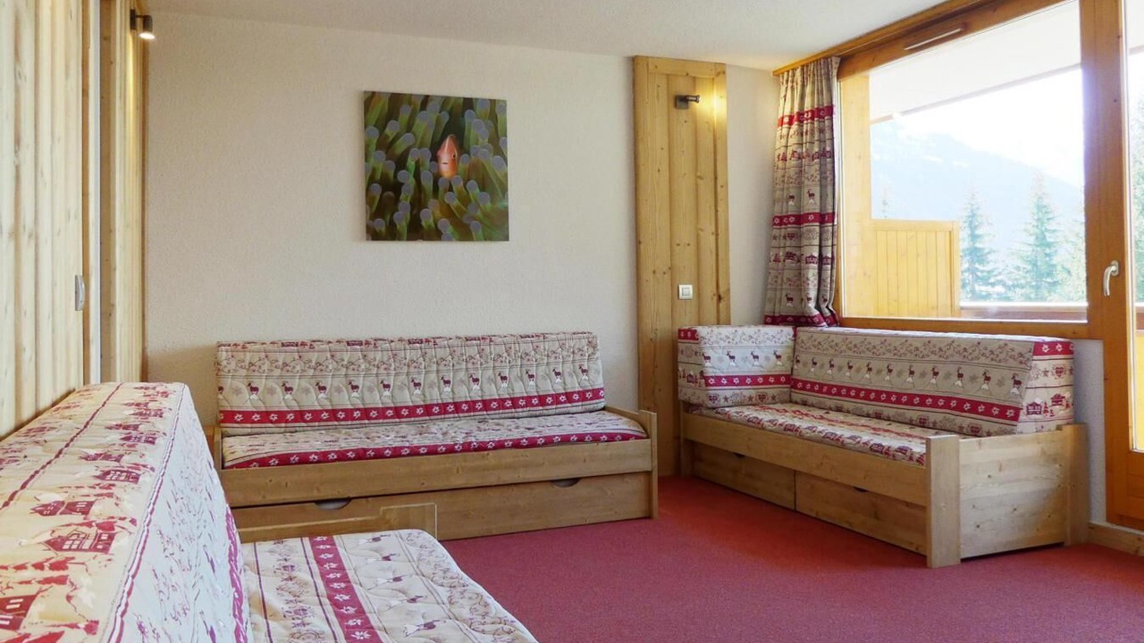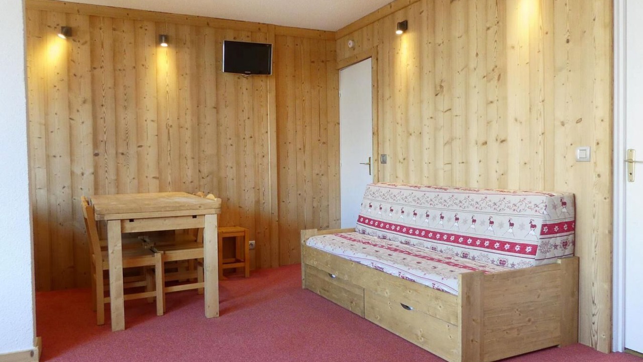 The Residence Plein Soleil in Mottaret in the Three Valleys ski area is ideally situated on the ski slopes and near the shops. The access to the residence is via the stairs by the small shopping centre in Mottaret. The nearest bus stop is 100 m away. Half board is available via the Restaurant Le Grain de Sel. The residence also offers wifi and a play room. Surface area : about 27 m². 1st floor. Orientation : South. Living room with pull-out sofa, single bed. Kitchen with oven, dishwasher, 2 electric cooking rings, fridge. Bathroom with bath-tub, WC. Balcony.