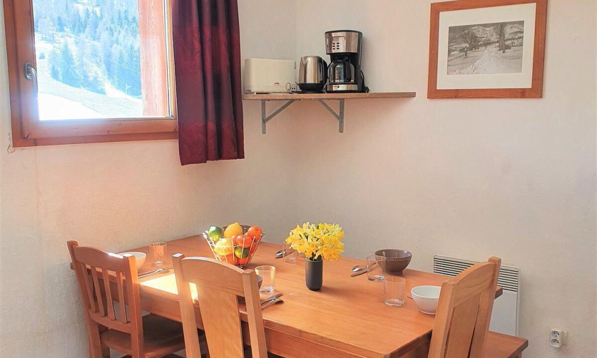 The residence Les Toits du Dévoluy, with lift, is situated in the heart of the ski resort of Superdevoluy. Ski slopes are at 50m, as well as the tourist office. Shops and amenities are at 100m. You will have a wonderful view over the valley or the ski area. Surface area : about 40 m². 5th floor. Orientation : South. View mountain (Pic de Bure). Living room with pull-out sofa. Bedroom with double bed (160*200). Cabin with 2 bunk beds. Kitchen with dishwasher, microwave, cooking rings, fridge. Bathroom with bath-tub. WC. Balcony. The beds in elevation are not suitable for children under 6 years.