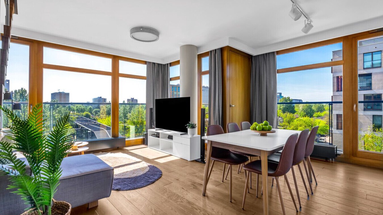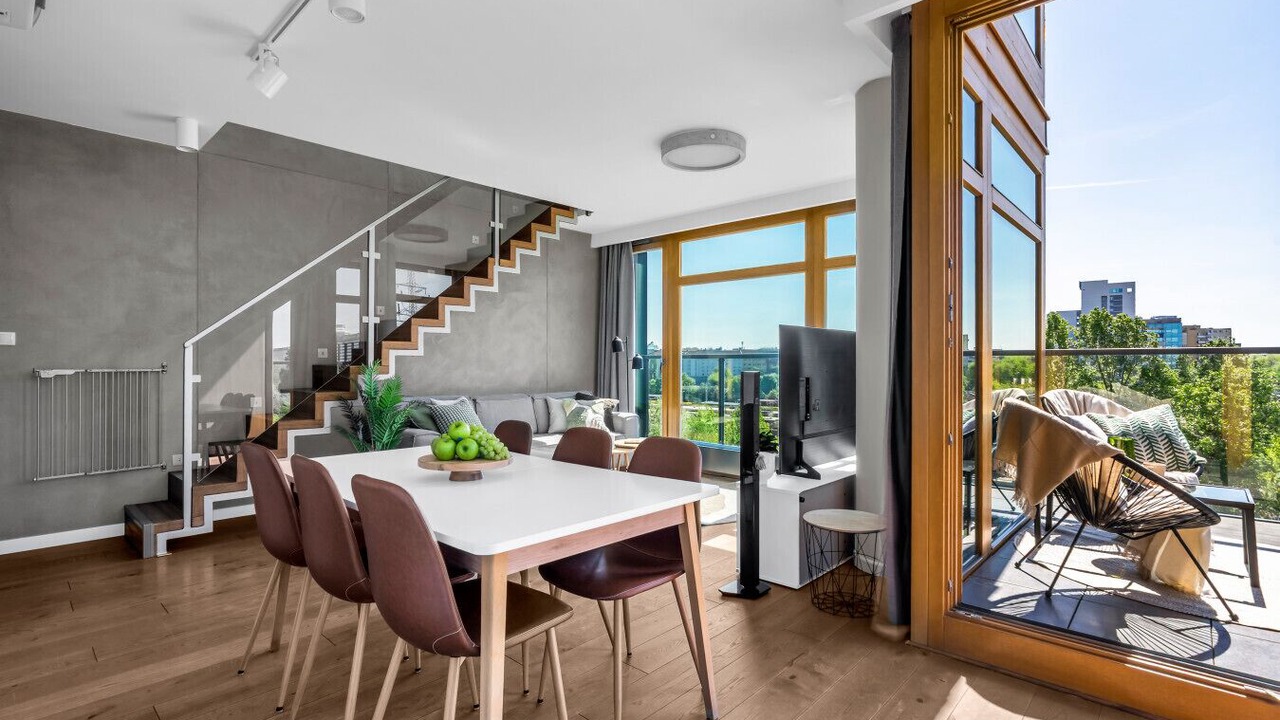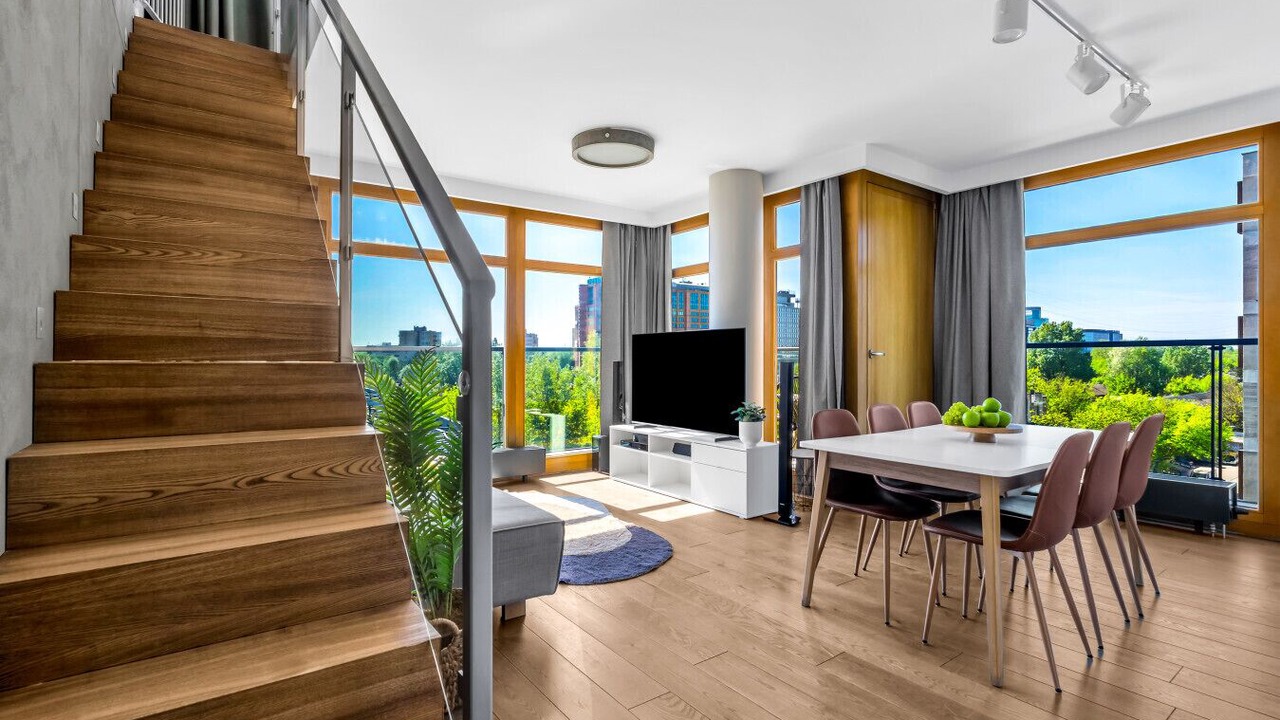 Discover the ultimate comfort and convenience in our luxurious two-level apartment, nestled on the 5th floor with a breathtaking city view. Located just 800m from the Rondo Daszyńskiego Subway station. Immerse yourself in the vibrant surroundings with plenty of restaurants and shops nearby, ensuring an unforgettable stay.