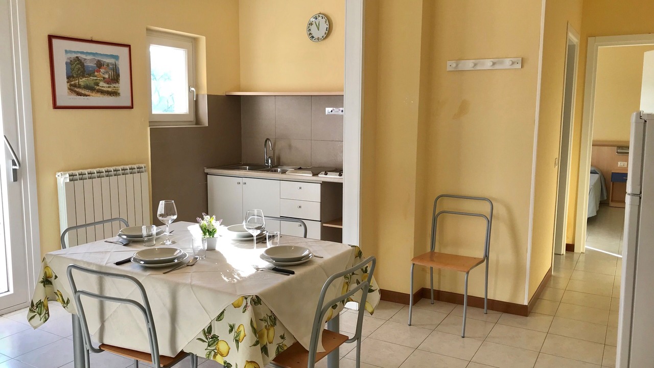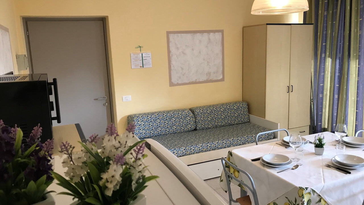 The 34 apartments suitable for 2/4 people are furnished with corner-kitchen with sofa-bed, bathroom with shower, one or wo bedrooms with twin beds or double ded, satellite TV, hairdryer, American coffee machine and safe box on payment. Bran with balcony or terrace, Denise with balcony & terrace.