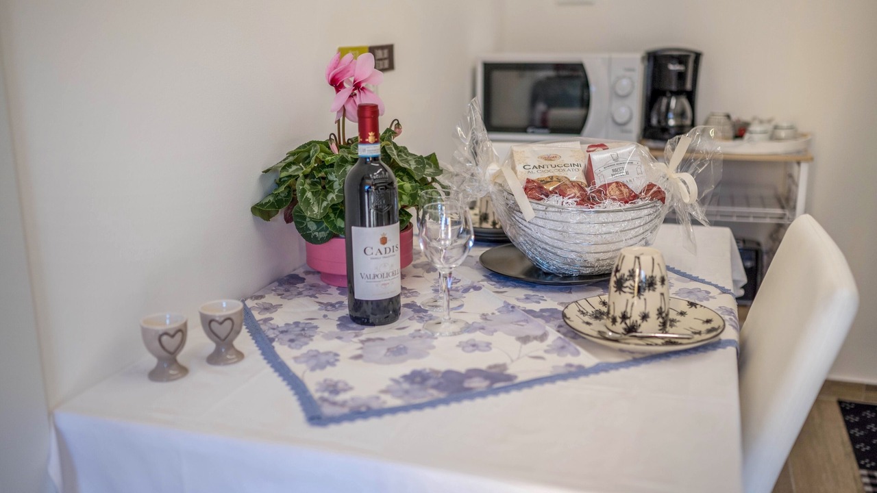 The comfortable and well-furnished “Apartament in Malcesine Cassone” is situated only a short walk from the lakeshore and is an ideal starting point for exploring the beautiful region with its many towns and scenic landscapes. The 45 m² apartment consists of a well-equipped kitchen, a bedroom (an additional single bed can be added) as well as one bathroom and can therefore accommodate up to 3 people. Additional amenities include Wi-Fi, air conditioning, a washing machine and a flatscreen satellite TV. The private outdoor area boasts an open terrace with seating furniture, where you can have breakfast surrounded by greenery and views of the hills and mountains. From the apartment, you can walk to shops, cafés, bars and restaurants within 4-5 minutes (300-400 m). The nearest beach, where you can take refreshing swims in the lake, lies also a 5-minute walk (400 m) away. There is a foot and cycle path connecting Torri del Benaco and Malcesine. Malcesine is located 5 km or an 8-minute drive from Cassone, with the Scaliger Castle and a cable car, which takes you to the peaks of Monte Baldo, where you can also experience paragliding. You can also take a bus from Cassone to Malcesine, leaving only 260 m (a 4-minute walk) from the apartment. 40 km or a 55-minute drive away, you can enjoy fun days at the famous Gardaland theme park. In Castelletto (6.5 km or a 10-minute drive), you can visit the ethnographic museum and the Roman Villa, an exceptional archaeological discovery. Brenzone sul Garda (4 km or an 8-minute drive) is home to numerous medieval churches worth a visit, including San Nicola in Assenza, San Zeno in Castelletto, adjacent to the Roman villa, Sant'Antonio Abate in Biaza and San Pietro a Campo.