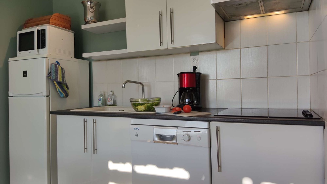 - Kitchen open to the living room, 4-burner ceramic hob, fridge / freezer, microwave, dishwasher, toaster, coffee maker, kettle, etc..