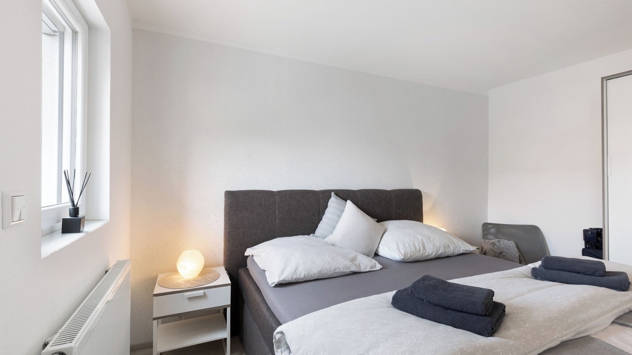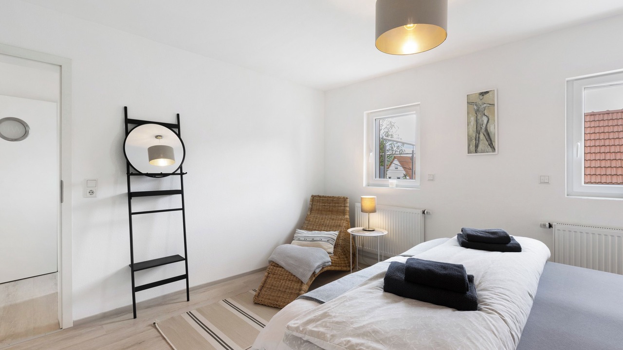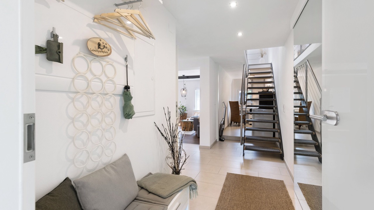 The holiday apartment Ferienwohnung Mittenglück is located in Lenningen and is the ideal accommodation for a relaxing getaway. The 100 m² property consists of a living room, a kitchen, 2 bedrooms and 1 bathroom as well as an additional toilet and can therefore accommodate 4 people. Additional amenities include Wi-Fi with a dedicated workspace for home office, a TV as well as a washing machine. In addition, a table tennis table is available for your use.