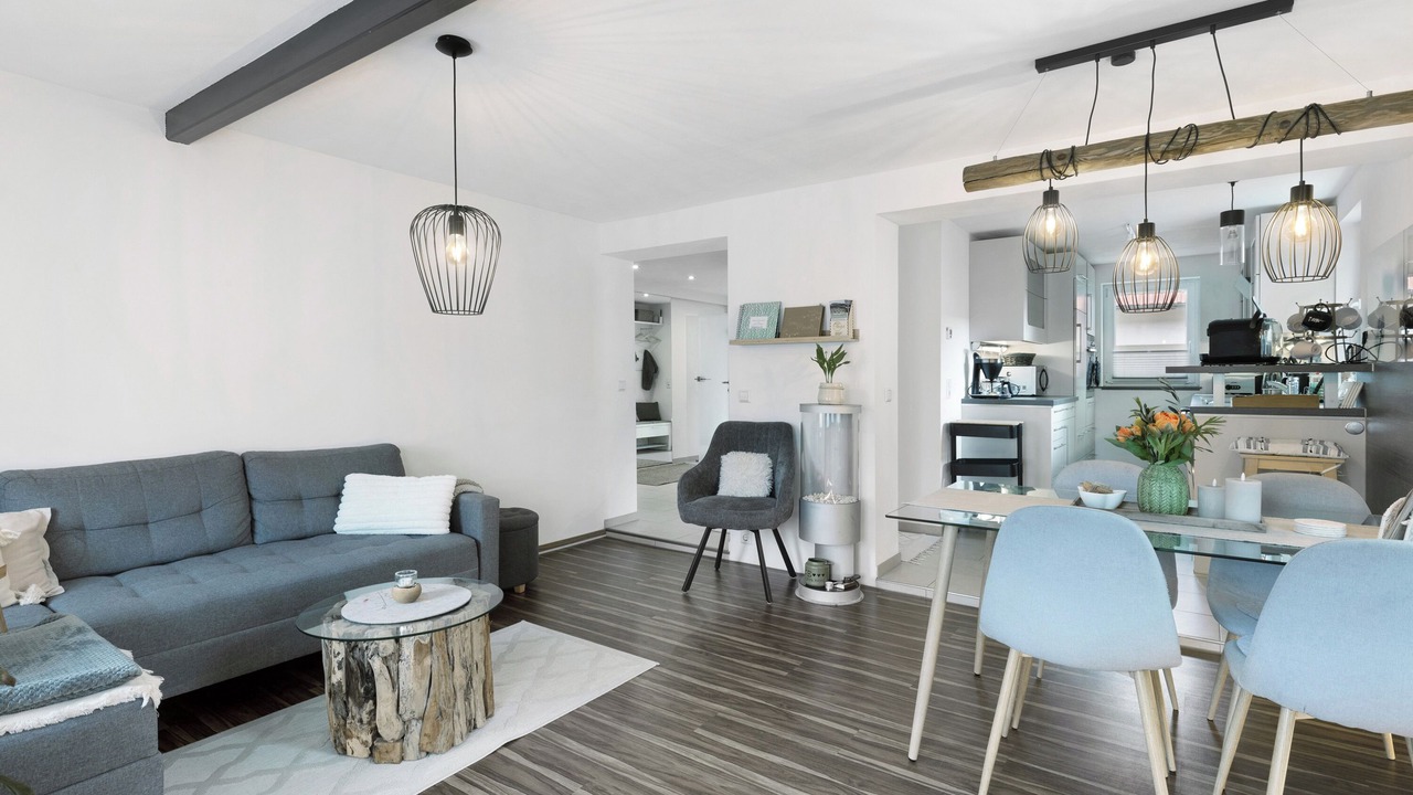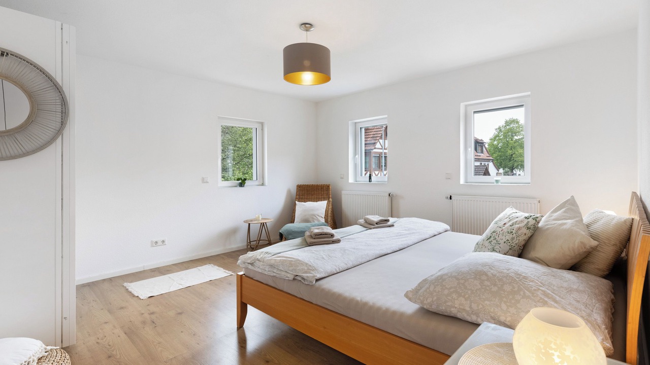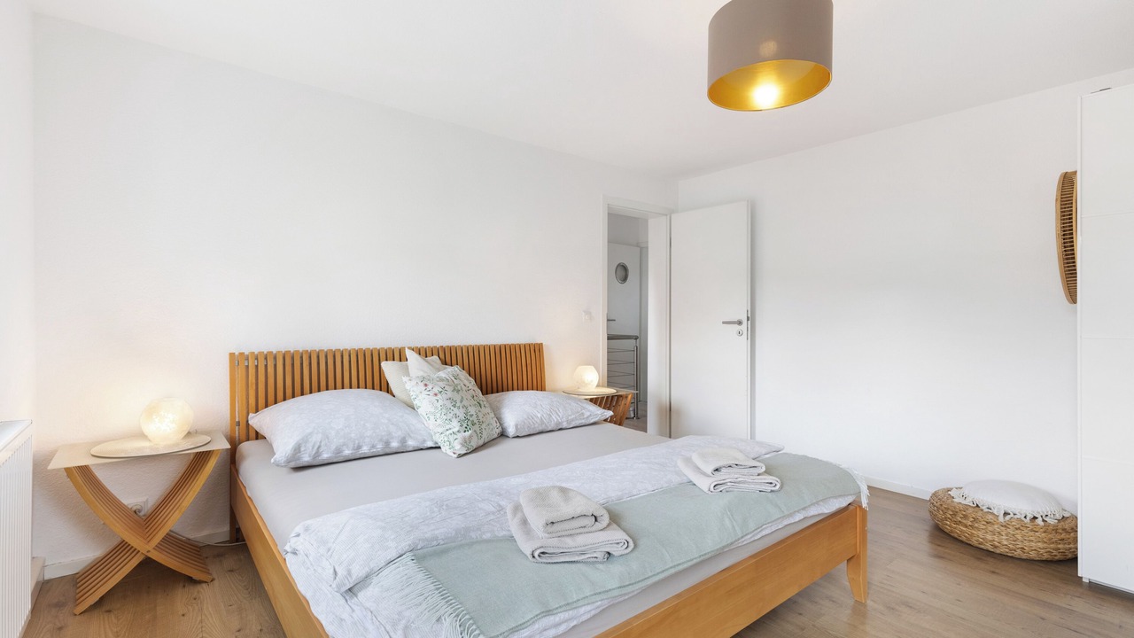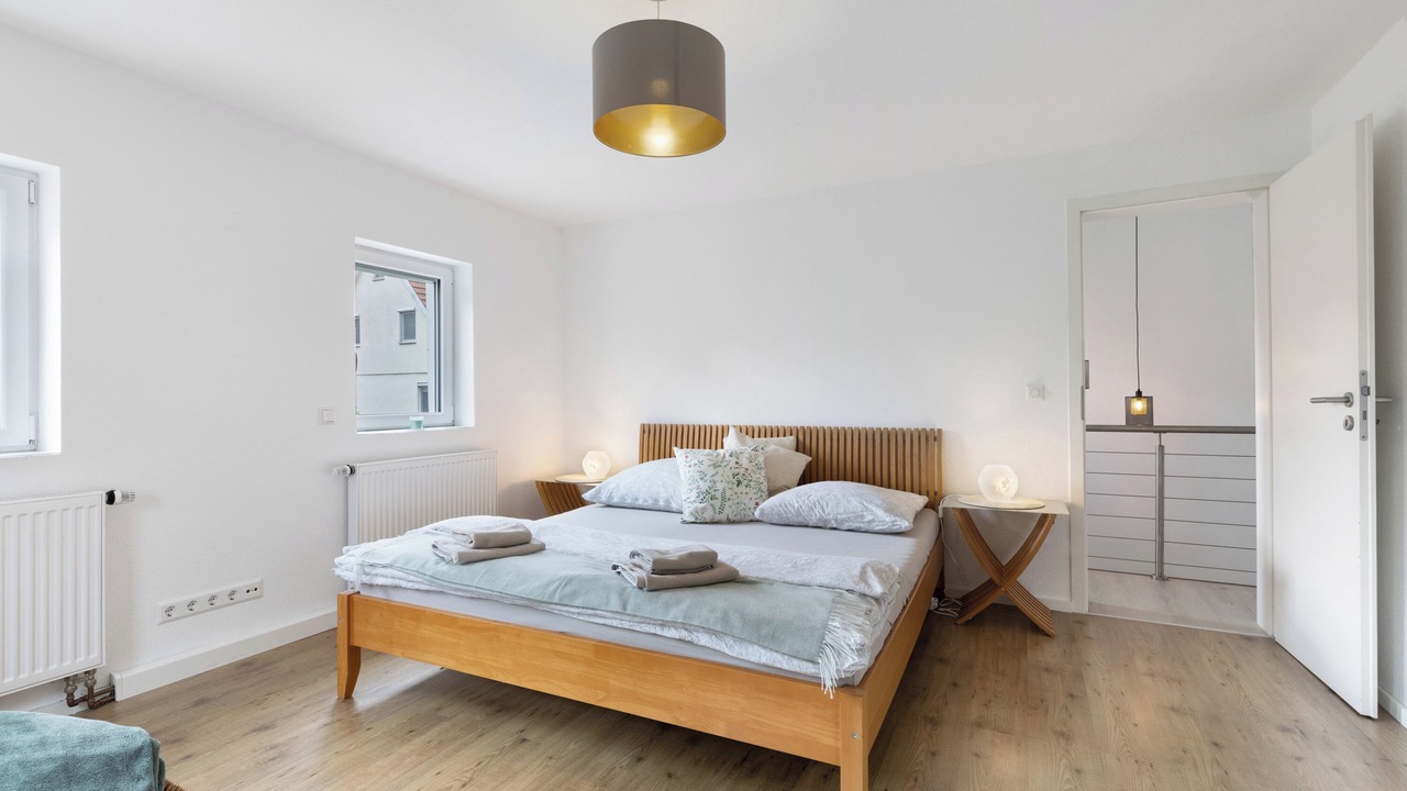 The holiday apartment Ferienwohnung Mittenglück is located in Lenningen and is the ideal accommodation for a relaxing getaway. The 100 m² property consists of a living room, a kitchen, 2 bedrooms and 1 bathroom as well as an additional toilet and can therefore accommodate 4 people. Additional amenities include Wi-Fi with a dedicated workspace for home office, a TV as well as a washing machine. In addition, a table tennis table is available for your use.