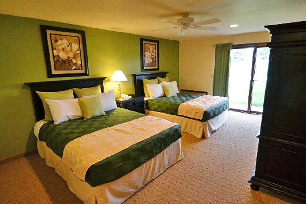Fox Hills Resort features stylish, well-kept units with excellent amenities. Based on your party size and preferences, choose from a variety of room sizes and rates. Fox Hills offers studio rooms, one-bedroom, two-bedroom, and three-bedroom apartments. The three-bedroom apartments sleep up to eight people. All guestrooms feature a full-sized kitchen or kitchenette with a microwave. Select units include a dishwasher. Every unit enjoys air-conditioning, telephone, and plush carpeting. A fireplace is featured in select units for cozy winter nights.
