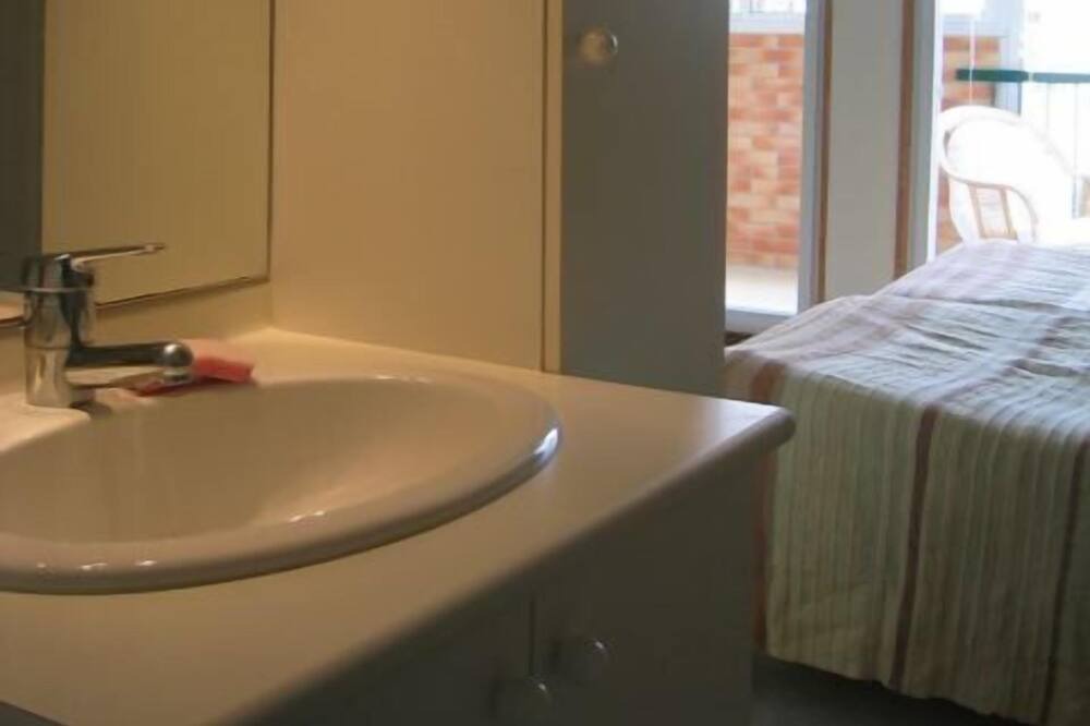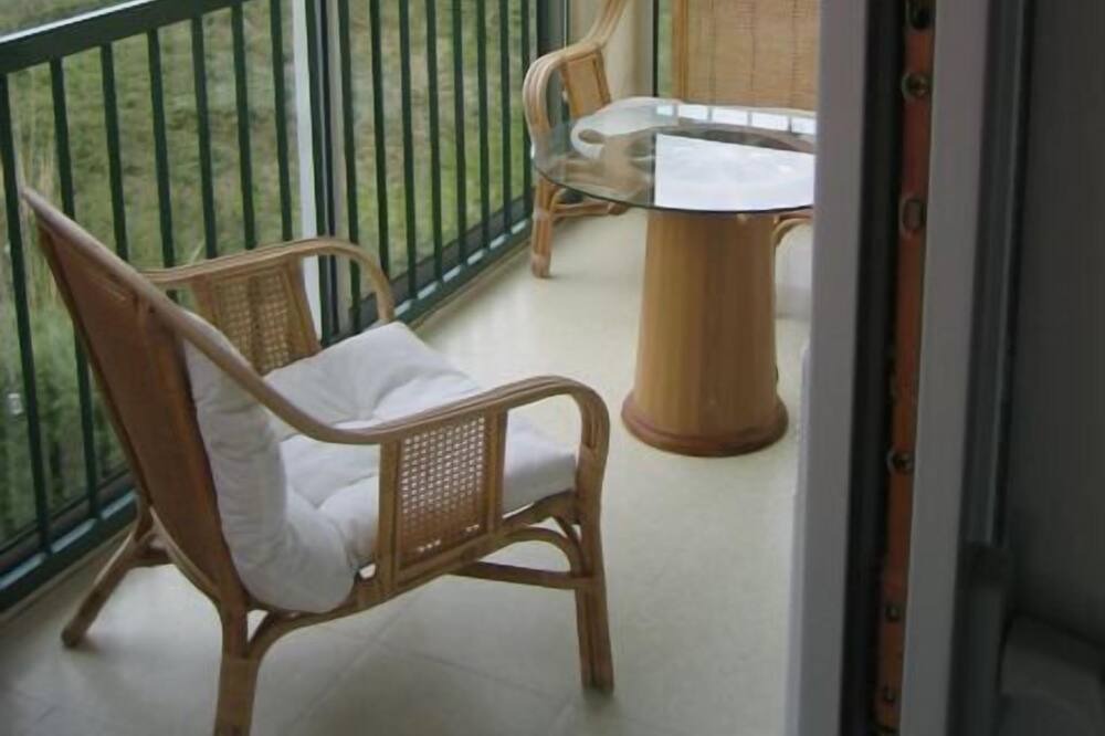 The apartment of 24 m2, has a loggia (covered balcony) with garden furniture.
