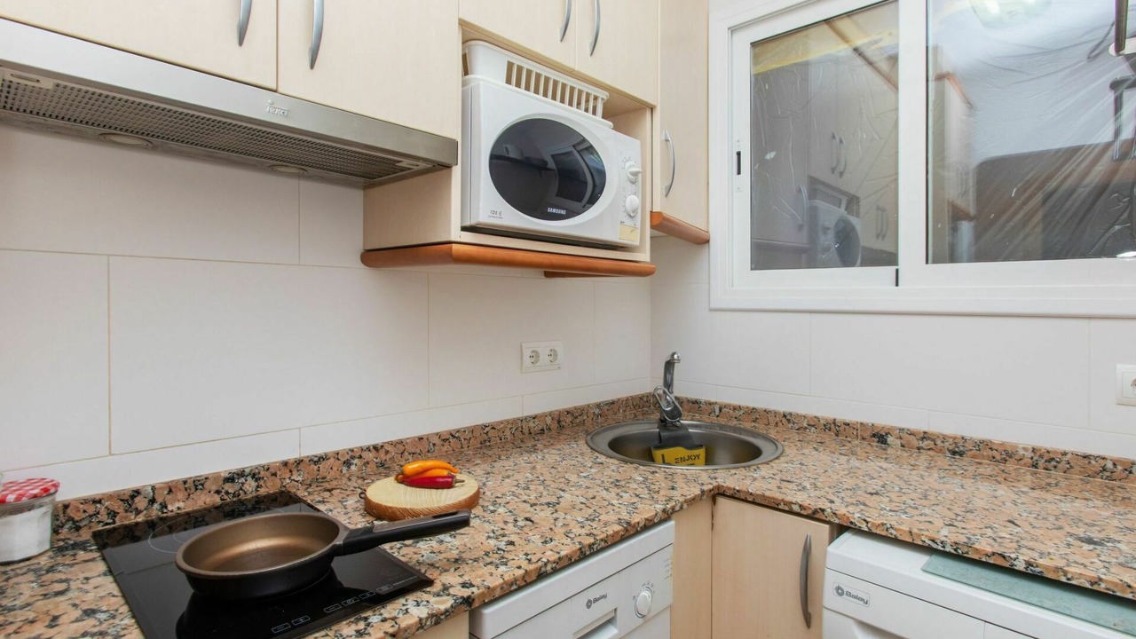 The apartment's kitchen is well-equipped with a dishwasher, two ceramic glass hob hotplates, a toaster, a kettle, a microwave, a freezer, and an electric coffee machine. The bathroom includes a bath, bidet, and WC. Additionally, the apartment provides a washing machine, an iron, a hair dryer, and free WiFi internet access. It is important to note that the TV channels are only available in Spanish (ES), and the apartment is equipped with a Smart TV.