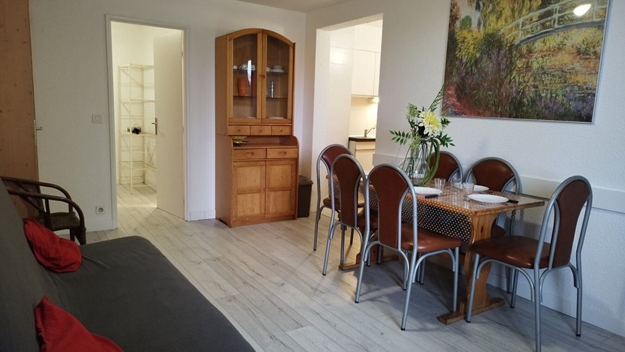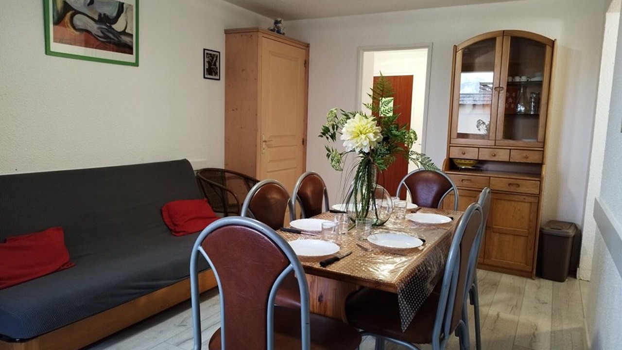 It is located at the foot of the ski slopes, close to shops and 5 minutes walk from the sports hall (relaxation and well-being area with swimming pool, bowling, ice rink, hammam, sauna, cinema, etc.)