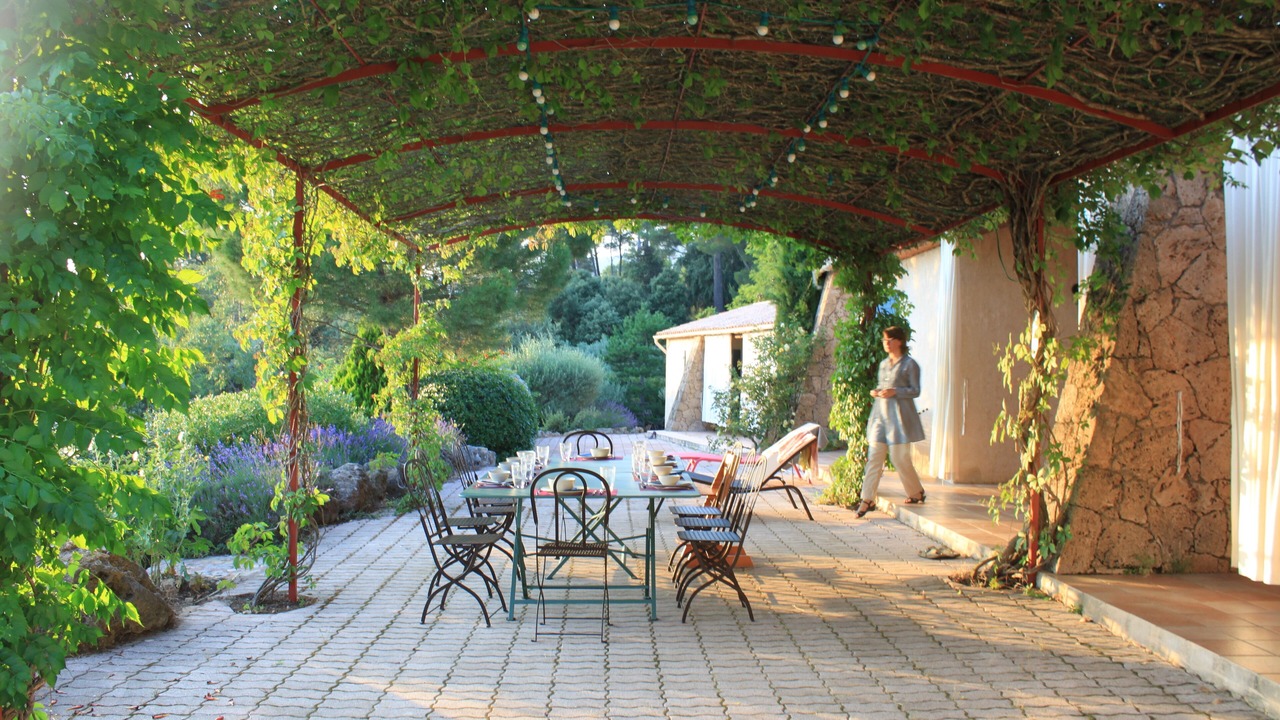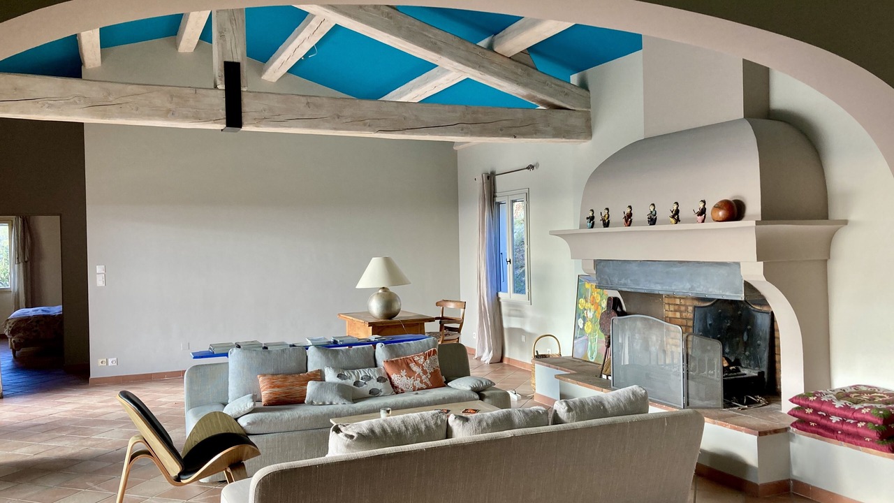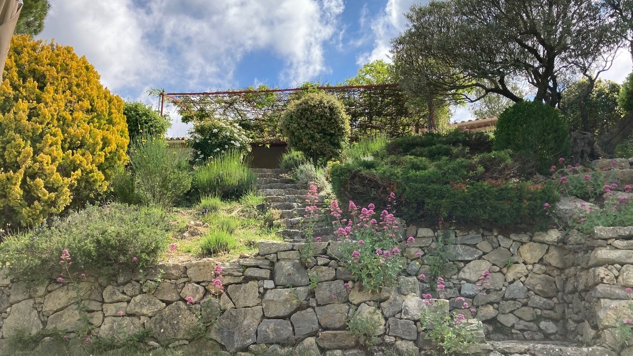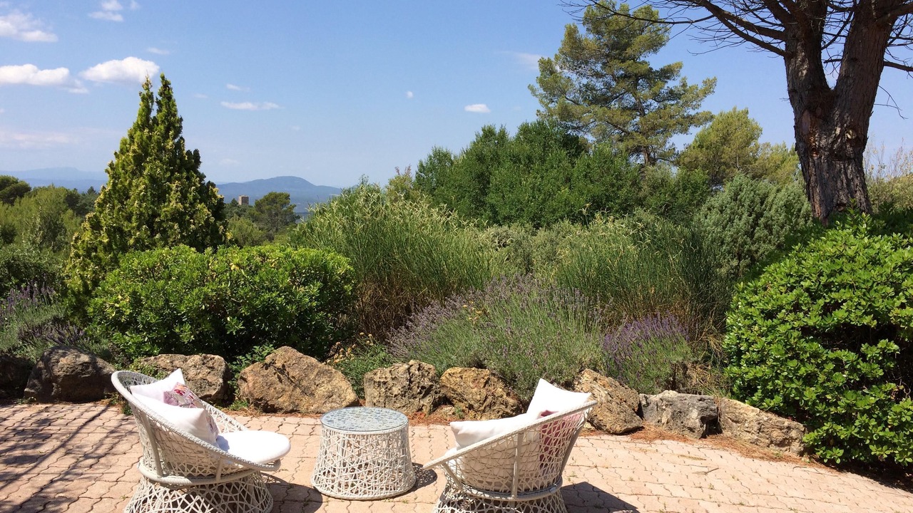 In an exceptional setting overlooking a large park with Mediterranean scents, south-facing view of a panoramic landscape (up to Sainte Victoire!) and a large saltwater pool with heat pump and safety curtain. A set of full foot including: a main house with cathedral living room of 90m2 and a fully equipped open kitchen, a master suite with large bathroom with art deco shower. A few meters away, joined by a terrace, a "small house" with 3 bedrooms direct access to the garden (2 adjoining rooms with 2 single beds and shower room + 1 bedroom with 1 double bed and a shower room).