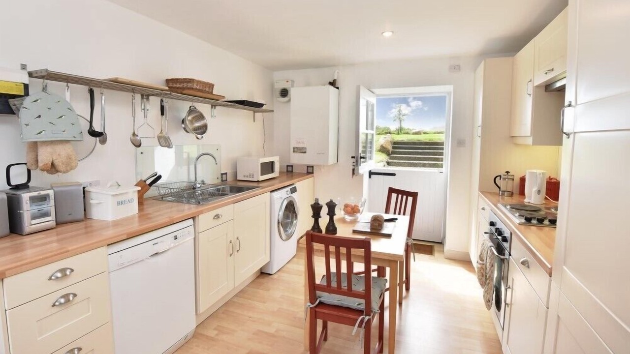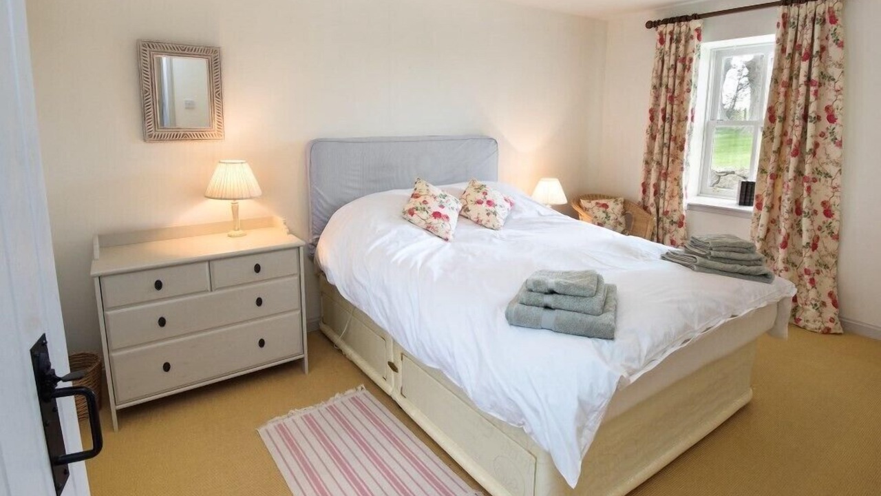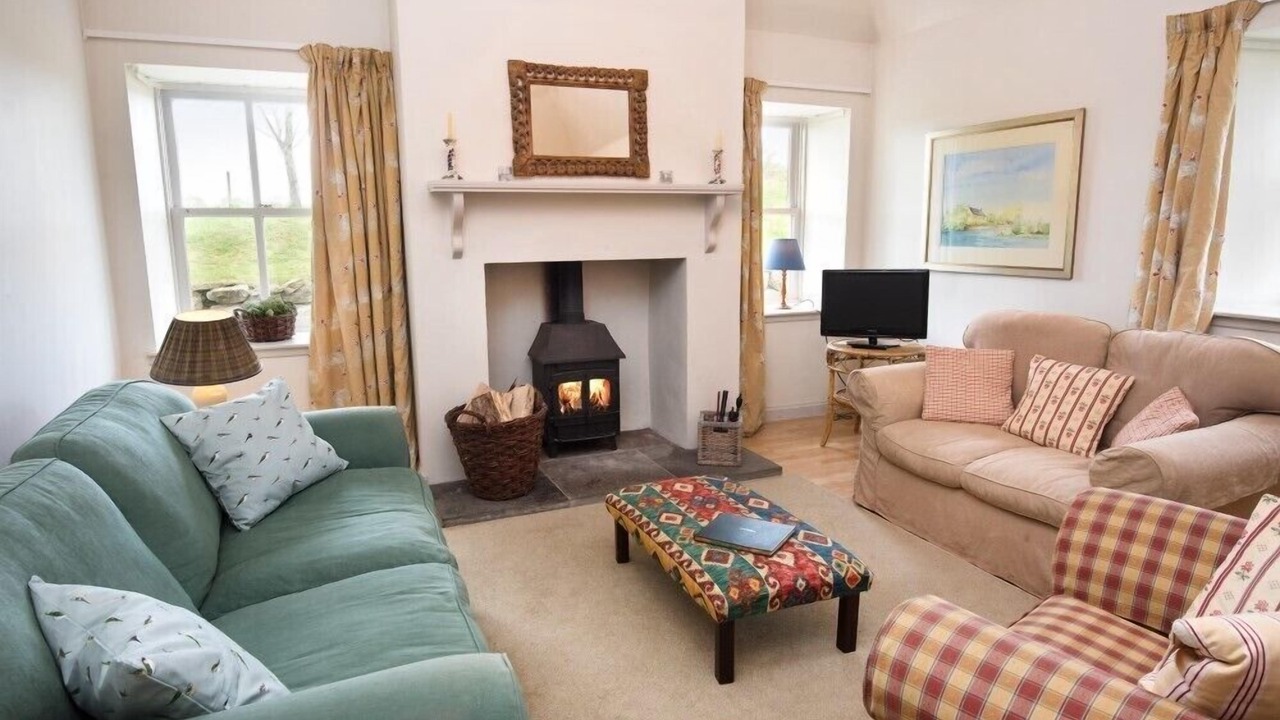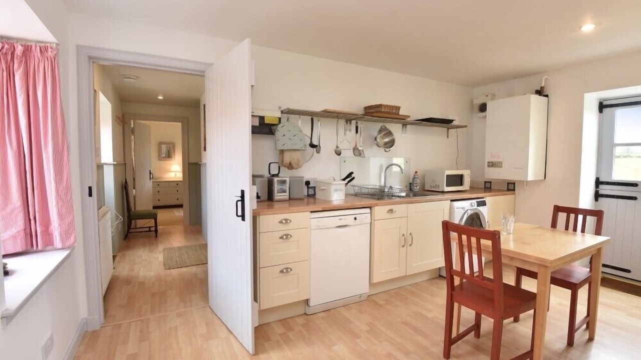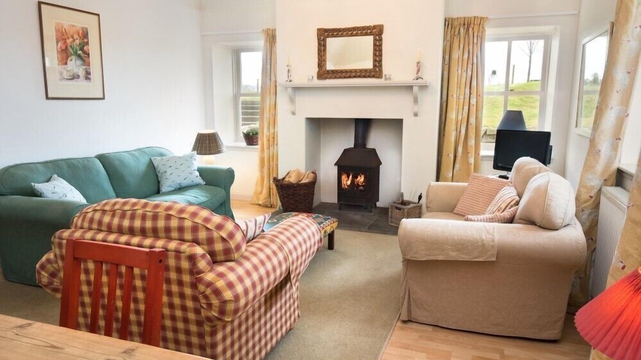 Amenities: Central heating with woodburning stove. Electric oven, grill and hob, microwave, fridge/freezer, washing machine/tumble dryer, dishwasher. TV, DVD player, WiFi, selection of books and games. Fuel, power and starter pack of logs for woodburning stove inc. in rent. Bed linen and towels inc. in rent. Travel cot. Private off-road parking. Walled gardens with lawns, gravelled area patio area, furniture. Pet-friendly. Sorry, no smoking. Shop 2 miles, pub 1.8 miles. Note: Access Monday to Friday to the owner’s walled garden. Note: Dogs are not allowed in the walled garden. Note: Though electricity is included in the rent, electric for charging cars is not included in the rental. Note: Please bring own linen for travel cot