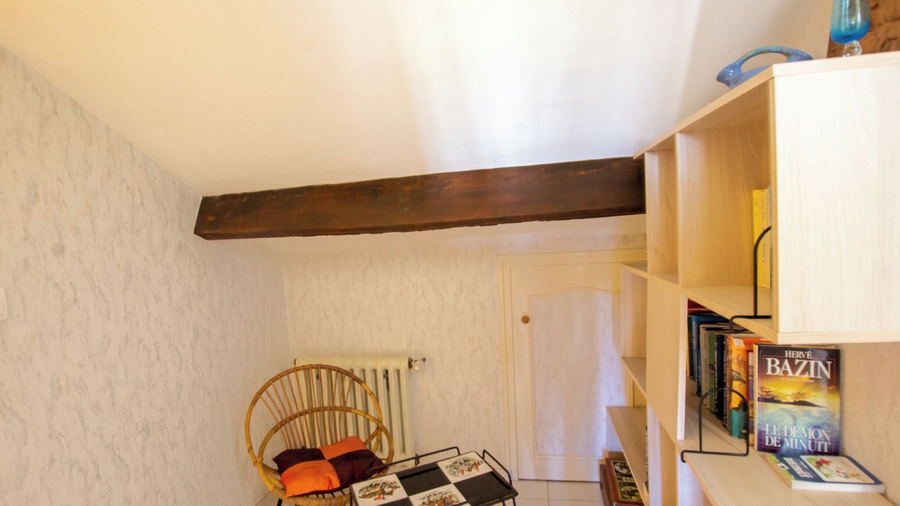 A reading room ideal for relaxing, a large bedroom with balcony equipped with a 140cm bed and a 90cm bed, as well as a bathroom with WC.