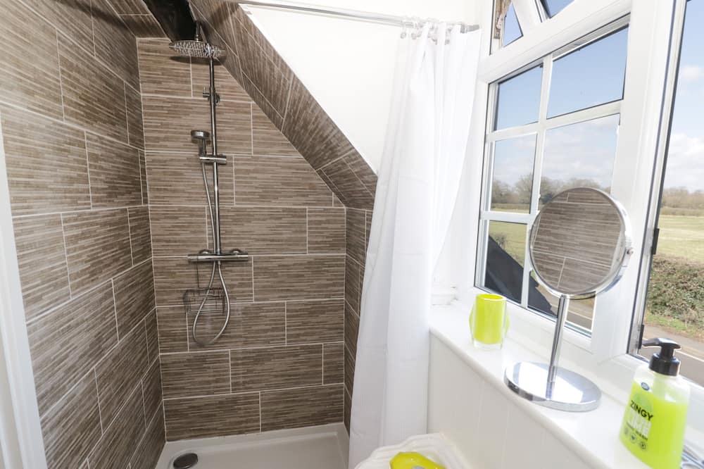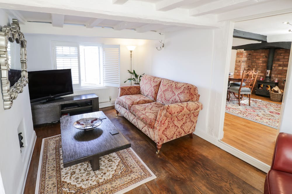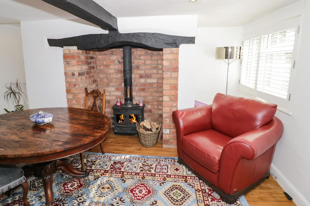The living areas include a kitchen with an electric oven, gas hob, microwave, fridge, freezer, washing machine and dishwasher, a dining room with seating for four and a woodburner, and a sitting room with a Smart TV. There are two double bedrooms, one with an en-suite shower room, along with a ground-floor bathroom. Outside, there is an enclosed front garden with furniture, and off-road parking for two cars. There is a shop within 0.1 miles and a pub within 0.6. Please note that this is a pet-free and non-smoking property. WiFi, fuel, power, starter pack for woodburner, bed linen and towels are all included in the price. There are sloped ceilings and low beams in the sitting room and bedrooms, as well as steps down into the kitchen, please take care. Discover the heart of England with a stay at Honeysuckle Cottage.