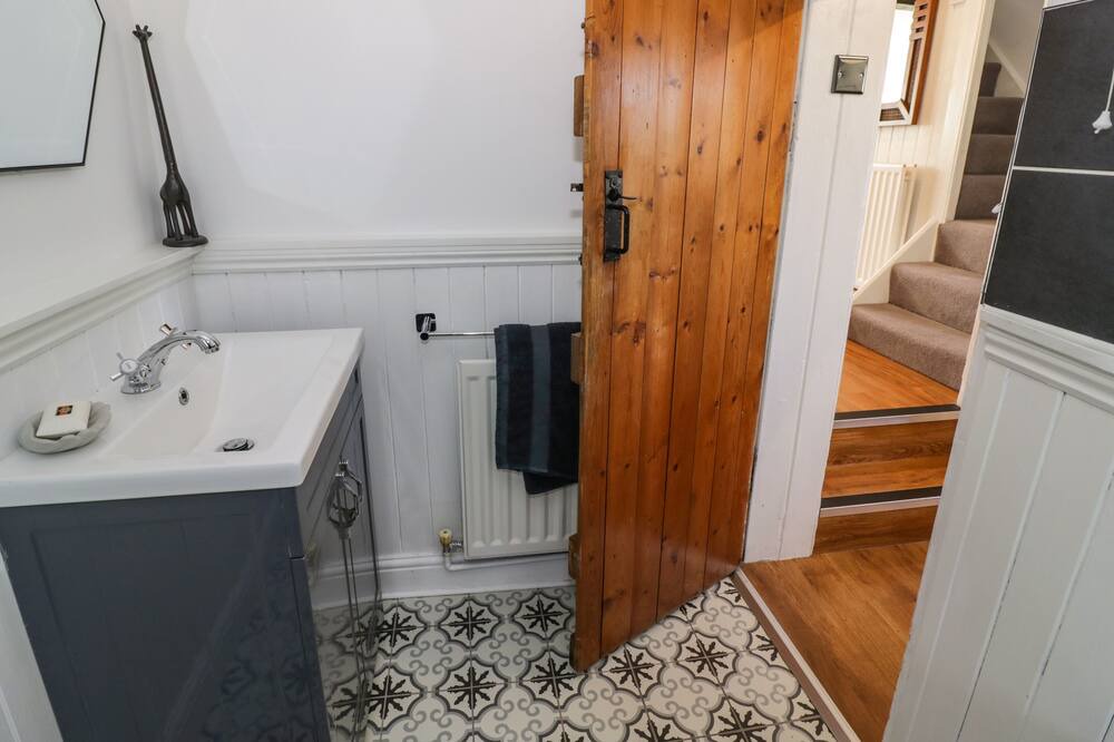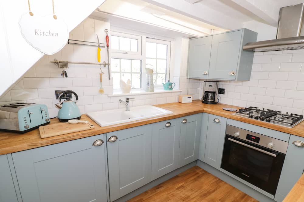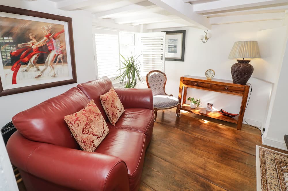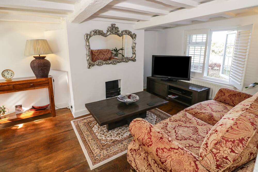 Amenities: Gas central heating with woodburning stove. Electric oven, gas hob, microwave, fridge, freezer, washing machine, dishwasher, coffee maker. Smart TV, WiFi. Fuel, power and starter pack for woodburning stove inc. in rent. Bed linen and towels inc. in rent. Highchair and travel cot available on request. Off-road parking for 2 cars. Enclosed front garden with lawn, patio and furniture. Sorry, no pets and no smoking. Shop 0.1 miles, pub 0.6 miles. Note: There is a low, beamed ceiling in the sitting room. Note: There are sloped ceilings and exposed beams throughout the first floor. Note: There are steps down into the kitchen, please take care