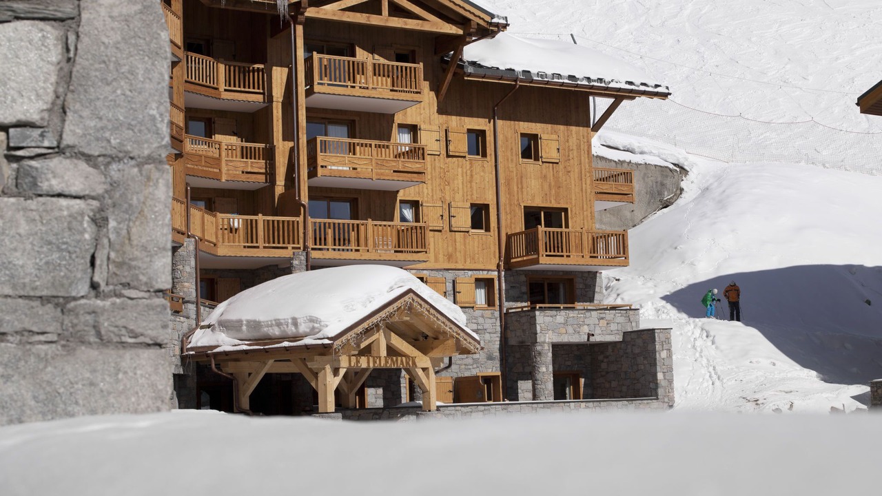 Beautiful, rustic, comfortable residence "CGH Résidence & Spa Le Télémark". 52 apartments in the residence. Above Tignes-Le Lac 250 m from the centre of Tignes, on the outskirts, 30 km from the centre of Bourg-Saint-Maurice, 750 m from the lake, directly by the skiing area. For shared use: indoor pool heated (13 x 7 m, seasonal availability: 01.Jan. - 31.Dec.). In the complex: reception, lounge, WiFi, sauna, fitness room, massage (extra). Steam room, hot tub, lift, storage room for skis, washing machine, tumble dryer (for shared use, extra), ski boot dryer. Bread roll service. Storeroom available. Communal covered parking (extra). Parking space or garage only for small to medium-sized cars. Dimension: height 190 cm. Shop, restaurant 250 m, railway station "Bourg Saint Maurice" 33 km, lake Lac de Tignes 750 m. Golf course (18 hole) 2.5 km, tennis 1 km, walking paths from the house 20 m, ski lift 150 m, slopes 20 m. Well-known ski regions can easily be reached: Tignes – Val d'Isère (Espace Killy). Please note: baby equipment on request (included). In case of good snow conditions, the house is accessible on skis. The photograph shows a typical example. The holiday properties may differ in living space, floorplan, equipment and furnishing.