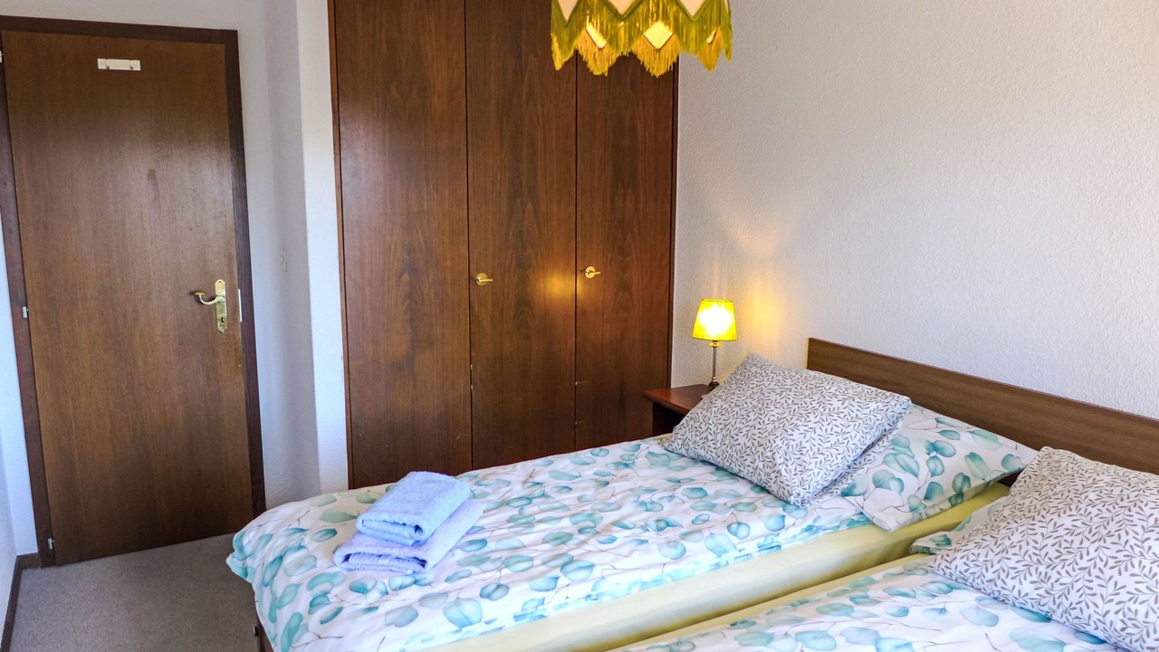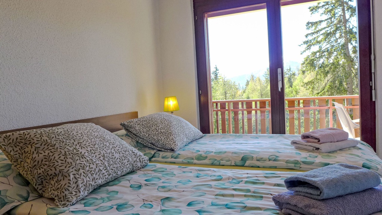 Beautiful, comfortable apartment house "Les Faverges". In the resort 200 m from the centre of Montana, in a sunny position, excellent location: right in the centre but still quiet, 750 m from the lake, 550 m from the skiing area, in a cul-de-sac, south facing position. In the complex: lift, storage room for skis, central heating system. Parking (limited number of spaces) at the house, public car park at 100 m, extra. Shop 200 m, supermarket 150 m, restaurant 250 m, bakery 200 m, 4 minute walk to the centre, bus stop "Montana Poste" 60 m, railway station "Funiculaire Montana Gare" 350 m, bathing lake "Moubra" 1.6 km. Golf course (18 hole) 2 km, tennis 1.6 km, skisport facilities 550 m, cross country ski track 1.6 km, ice rink 500 m. Well-known lakes can easily be reached: Grenon 750 m, Etang Long 2 km. Please note: ski bus (free of charge). Additional accommodations can be booked. The residence is built on an incline. The floors are seen more like levels (calculated from the bottom of the residence).
