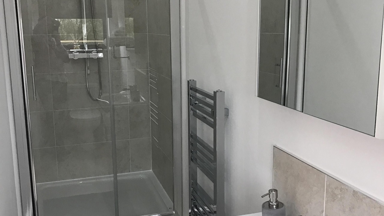 The kitchen is small and yet well-equipped including electric hob, oven, microwave, fridge, dishwasher and coffee machine. The separate bathroom includes a large walk-in shower, vanity basin and WC/toilet and is equipped with a hair dryer and complimentary toiletries. Please note there is not a washing machine/dryer in the cabin, however there is a very good launderette 3 minutes drive away (opposite Tesco supermarket).
