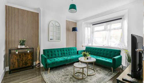 Luxury Large House With Games Room Sleeps Up to 12 is located in Feltham, just 3.1 miles from Hounslow West Tube Station and 5.3 miles from Twickenham Stadium. This property offers access to a pool table, free private parking, and free Wifi. Outdoor seating is also available at the vacation home. This vacation home includes 3 bedrooms, 2 living rooms and a flat-screen TV, an equipped kitchen with a dining area, and 2 bathrooms with a bath and a washing machine. Towels and bed linen are featured in the vacation home. For added privacy, the accommodation features a private entrance. You can play table tennis at Luxury Large House With Games Room Sleeps Up to 12. Guests can also relax in the garden. Osterley Park is 5.3 miles from the accommodation, while Thorpe Park is 6.4 miles away. London Heathrow Airport is 2.5 miles from the property.