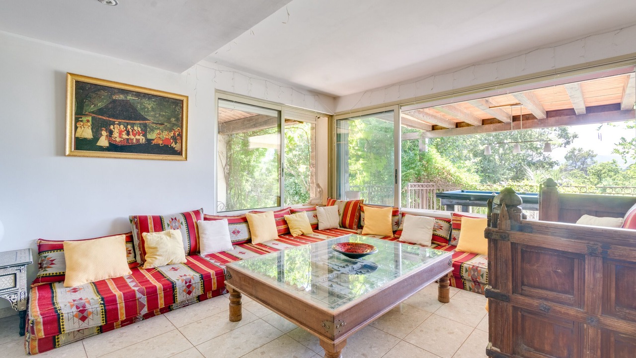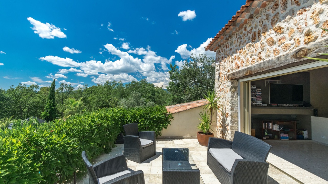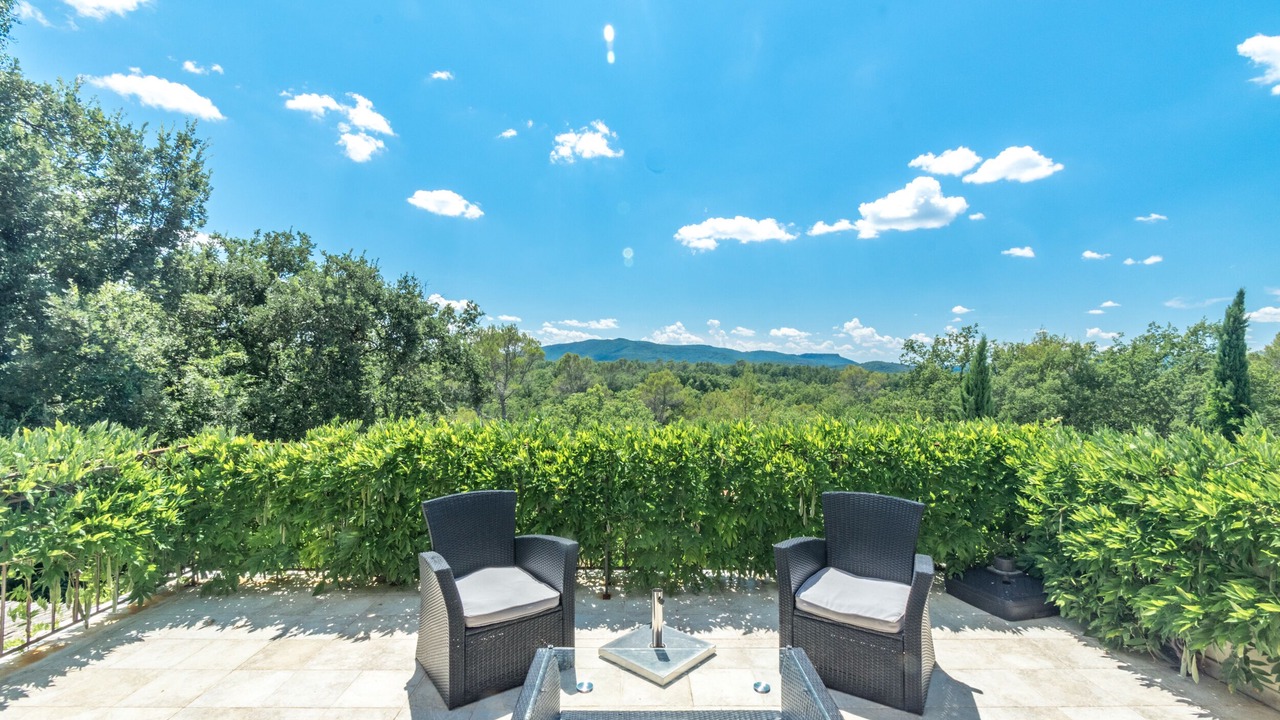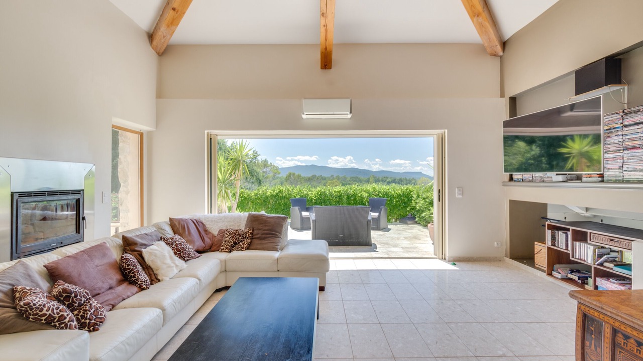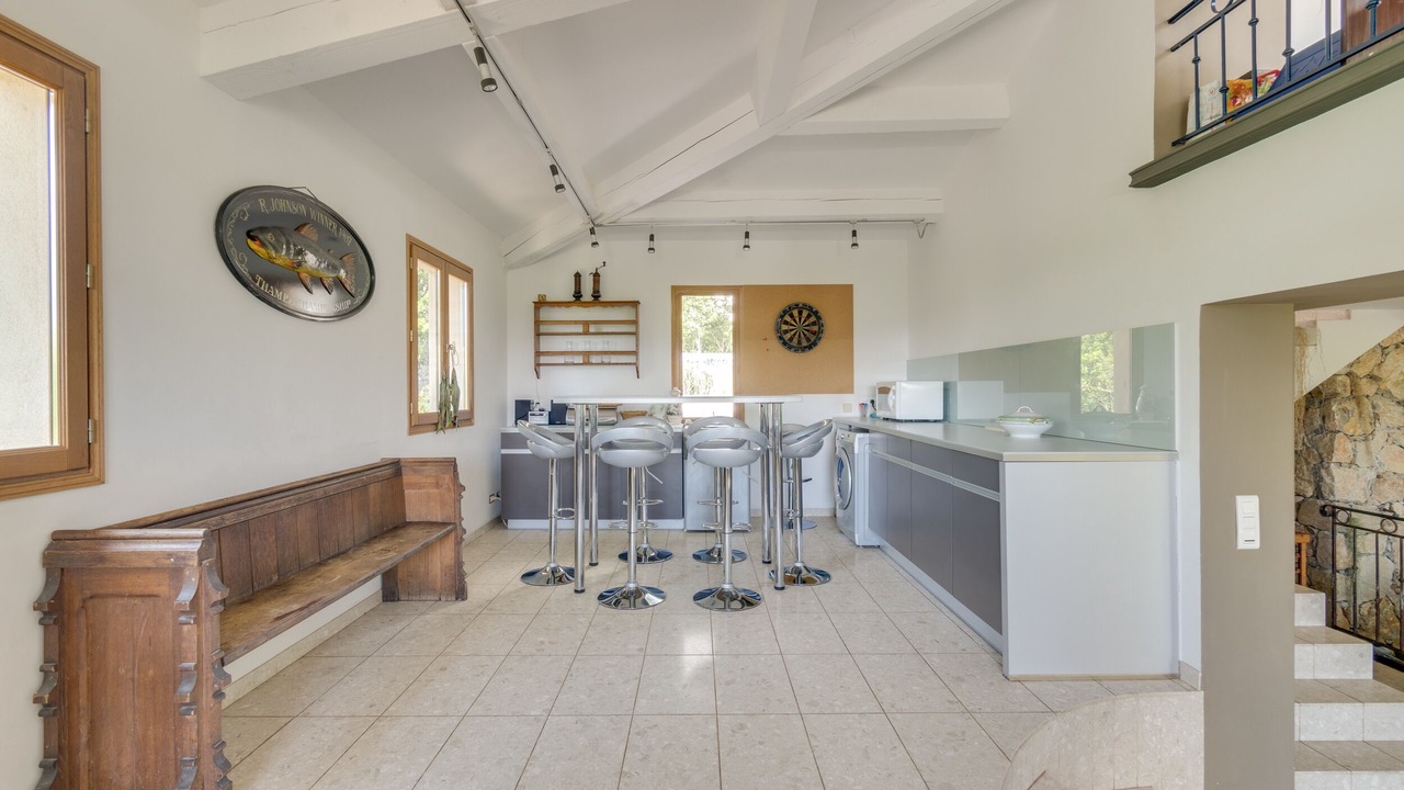 Located in a quiet and completely private location on the edge of a charming village half an hour from Cannes and other coastal towns such as Saint Raphael and Mandelieu, with Saint Tropez 45 min away. This very spacious, luxurious villa, is extremely well equipped including home cinema, satellite television and for the sporty a slate bed pool/billiard table, table tennis table, football table, a boules court as well as a well equipped exercise room including the latest spinning bike. The beautiful 11 x 4m heated swimming pool is the key freature of the property and set in one acre of gardens in a completely secluded location with stunning views. Overlooking this pool is also the gas barbecue and table seating 12 on the terrace. Internally there is a pond housing some very large Koi carp and numerous seating areas externally and internally to relax and enjoy your holiday. Wifi (fibre optic) connection throughout as well as English and French tv, 100's of DVD in the home cinema (tv) upstairs. Perfect for one or two or even three or more families to relax together and perfectly located to enjoy the beaches, forest and lakes close by as well as charming provencial villages with good restaurants and markets.