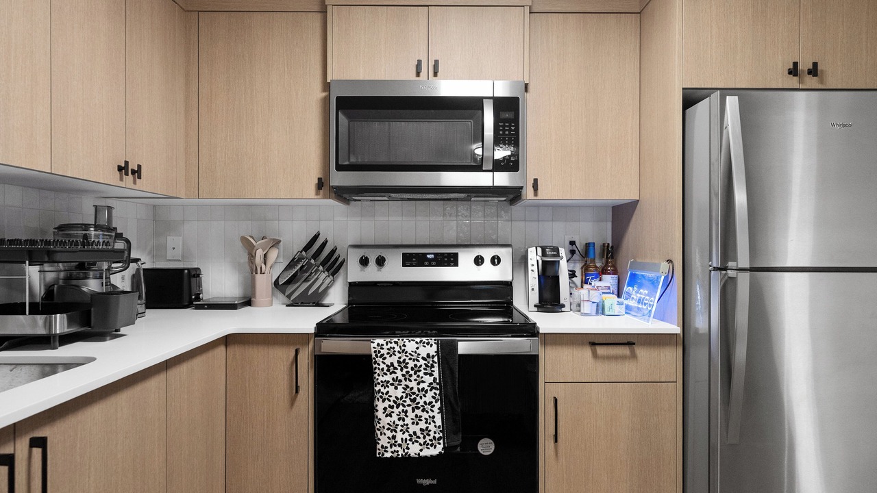 Inside, you'll find two spacious bedrooms, each with a comfortable queen bed and ample closet space. A dedicated workspace and high-speed Wi-Fi make it ideal for streaming, meetings, or remote work.