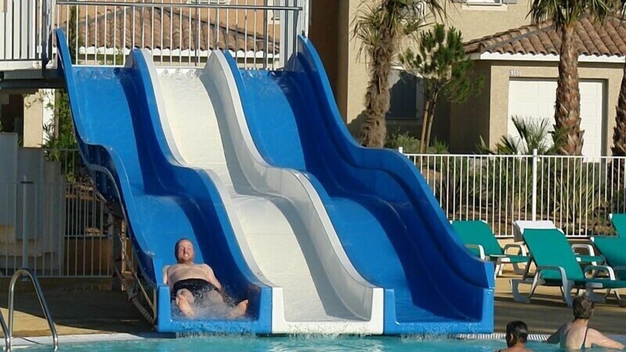 An ideal holiday residence for families with children who want to relax in authentic nature. The Mas des Vignes estate is located in the heart of the Vaunage, 30 km from Nîmes. 2 swimming pools, 1 of which is heated, a mini-golf course and a multi-sports ground are at your disposal. This modern holiday residence can accommodate 6 people. It has 2 bedrooms for 2 people and a sofa bed in the living room. The kitchen is equipped with everything necessary for your comfortable stay (dishwasher, microwave, 4-burner stove, freezer, etc.). Fans guarantee pleasant freshness in the summer season. Many activities are offered in the area of Mas des Vignes (in summer). A restaurant and a convenience store - for fresh bread every morning (in summer) - are on site. Relax in the swimming pool with slide, play tennis or hike in the surrounding scrubland. The health trail awaits you to stay in shape throughout your vacation.