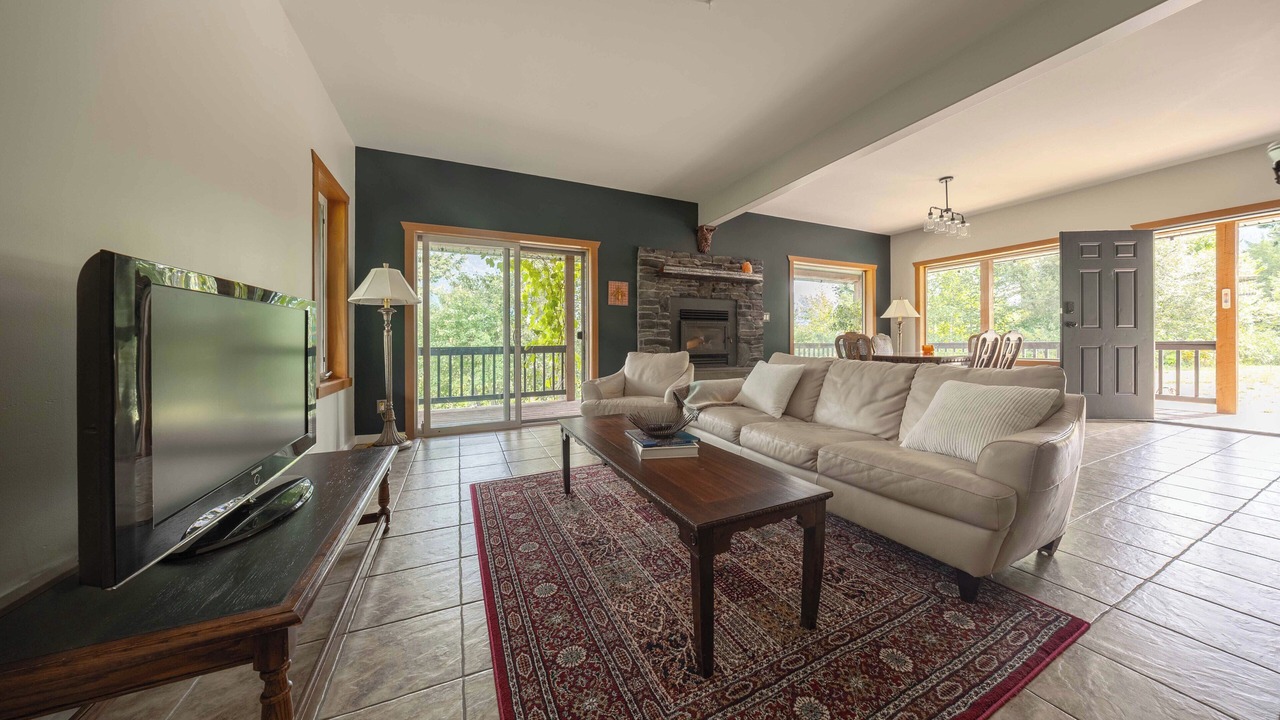 This private two story cedar shake retreat offers open-concept living, a fully equipped kitchen, wood burning fireplace, outdoor fire pit, wrap around deck, washer/dryer, and ample parking.