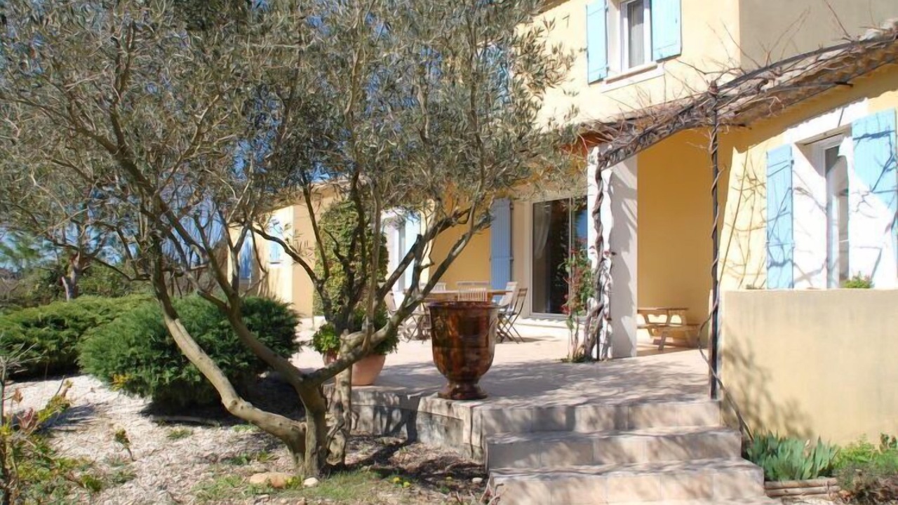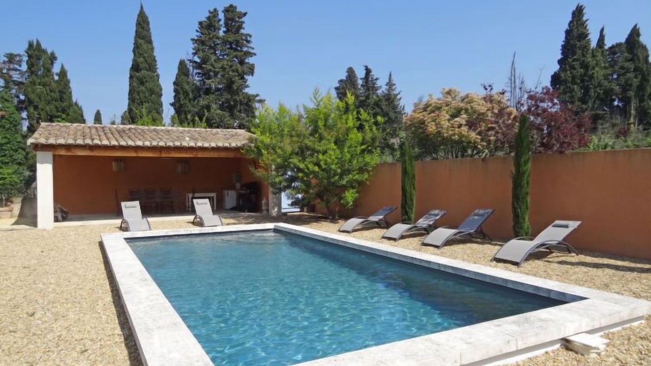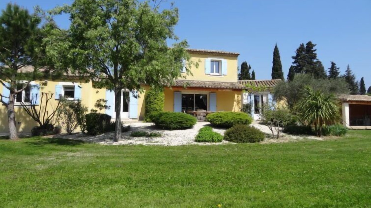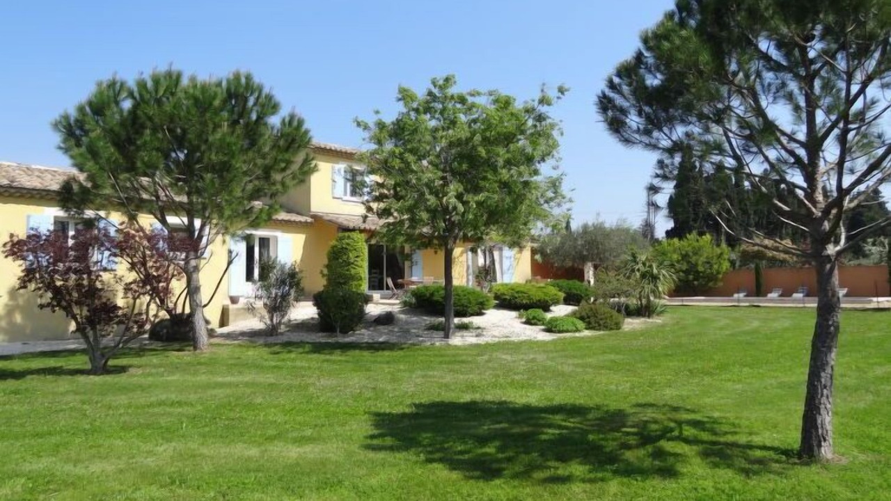 Eyragues 6 km from Saint-Rémy-de-Provence: Beautiful villa "Siflora", surrounded by meadows. In the resort 1.5 km from the centre of Eyragues, in a quiet position. Private: property 3'500 m2 (fenced), large, well-kept garden (fenced) lawn and trees, swimming pool fenced (4 x 9 m, depth 120 - 170 cm, seasonal availability: 01.Apr. - 30.Oct.) with internal staircase. Table tennis, barbecue, children's playground (swing), parking (for 4 cars) on the premises. Shop 1.5 km, restaurant 1.5 km, bus stop "Les jardins" 1.5 km. Tennis 1.5 km. Nearby attractions: Saint-Rémy-de-Provence 5 km, Avignon 20 km, Arles 27 km, La Camargue 70 km, Fontvieille 19 km, Les Baux de Provence 13 km. Access to the property through an electric gate. Garage reserved for bicycles and motorbikes.