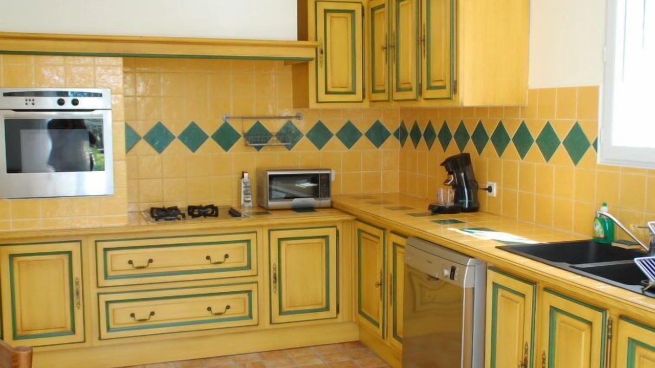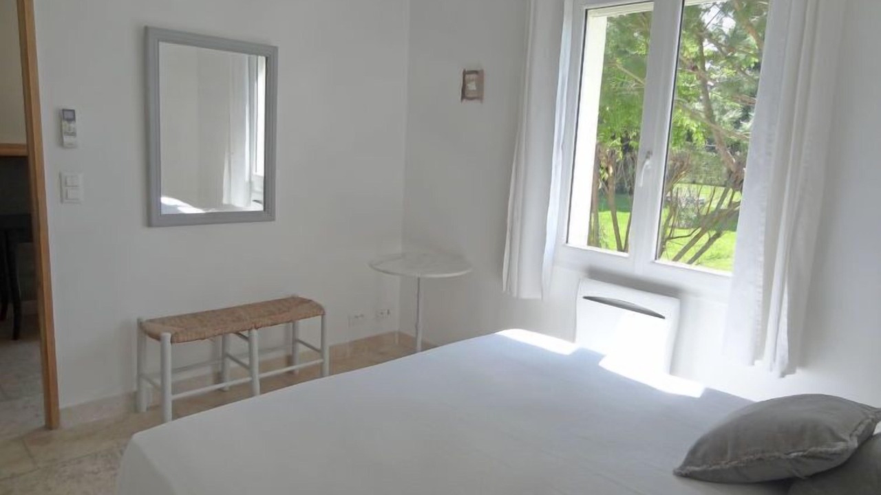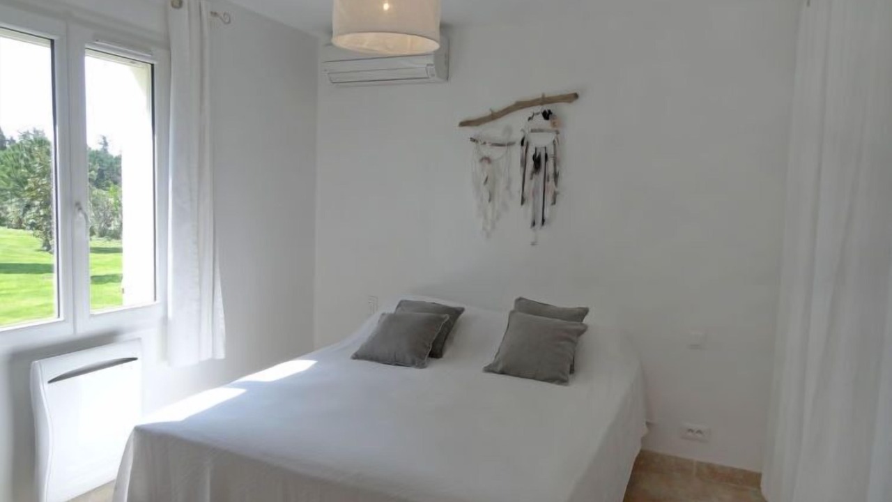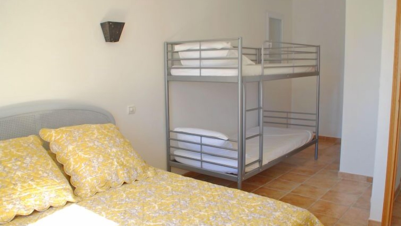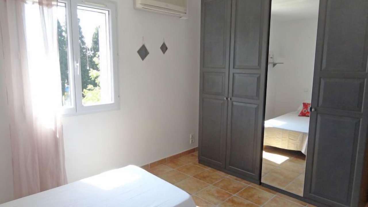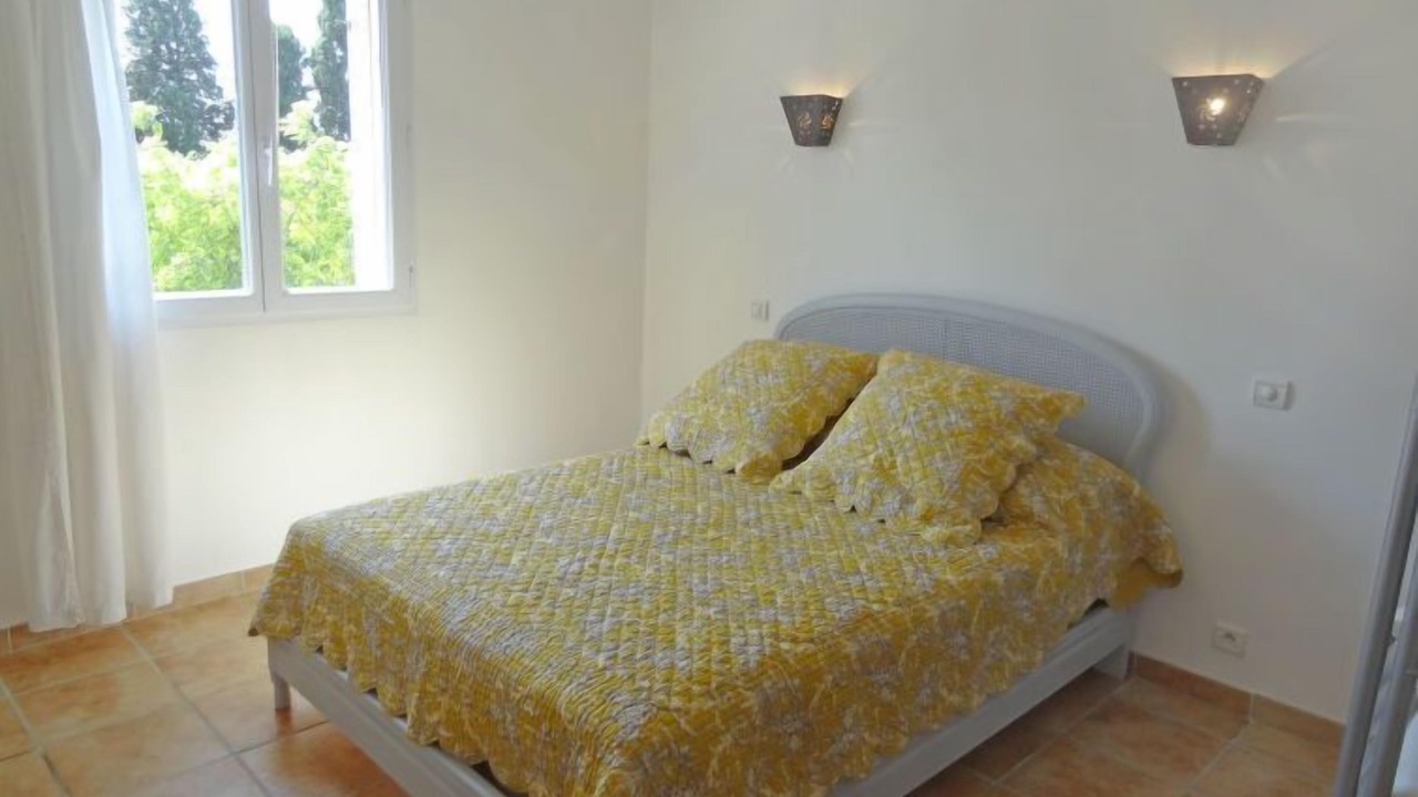6-room house 170 m2 on 2 levels. Beautiful furnishings: entrance hall. Living/dining room 50 m2 with TV (flat screen). Exit to the terrace. Office. 2 rooms, each room with 1 french bed (1 x 160 cm, length 200 cm), air conditioning. Kitchen 25 m2 (oven, dishwasher, 4 induction hot plates, microwave, freezer). Exit to the terrace. Shower, sep. WC. Upper floor: 1 room with 1 french bed (1 x 140 cm, length 190 cm), air conditioning. 1 room with 2 beds (90 cm, length 200 cm). Bath/WC. Floor heating. Terrace 60 m2 partly roofed. Terrace furniture, electric barbecue, deck chairs (8). Facilities: washing machine, mosquito net, children's high chair, baby cot for up to 2 year olds. Internet (WiFi, free). Please note: non-smoking house. Maximum 3 pets/ dogs allowed. Smoke alarm. The pool mentioned in the description is for private use.