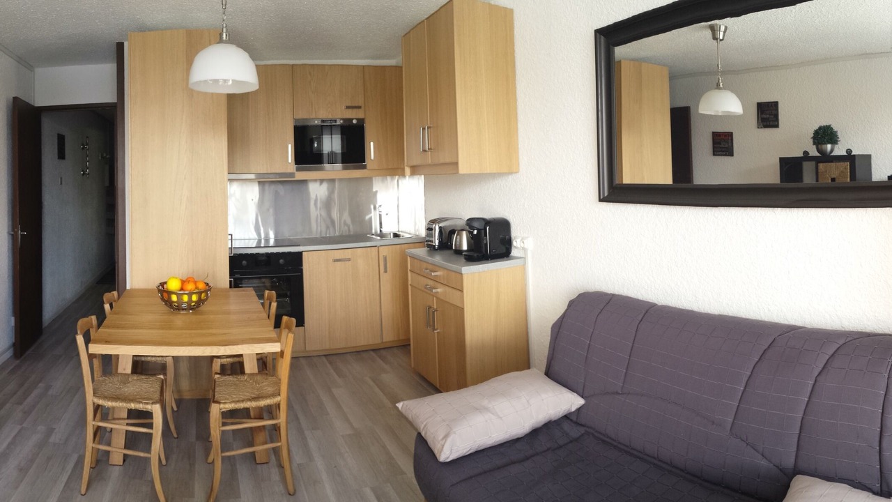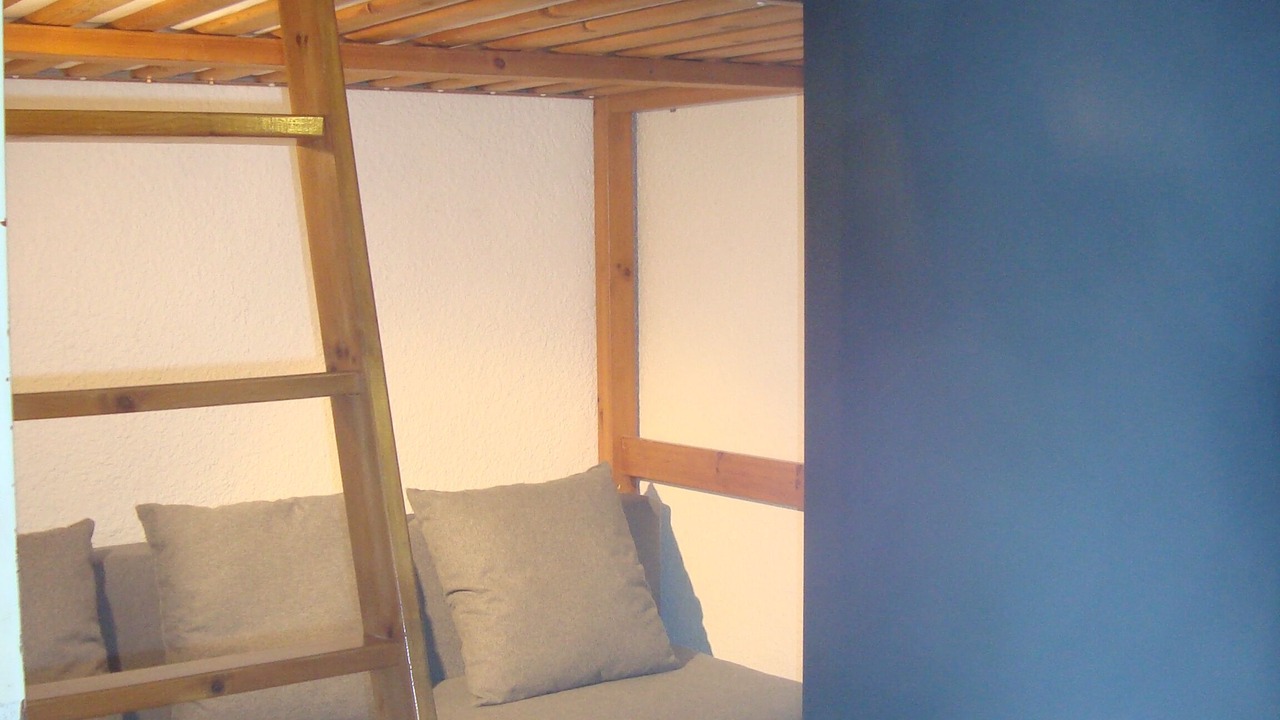 Apartment of 31m2, renovated in 2015, the building MEIJOTEL Centre ski school opposite station, tourism office, 20m from the slopes and shops, labeled 3 clésvacances. Sleeping area with bunk bed 140cm and under bench in bed 1 place 1 or 2 up with tv tnt library with books bluray player gaming companies Separated from the living room by a door.