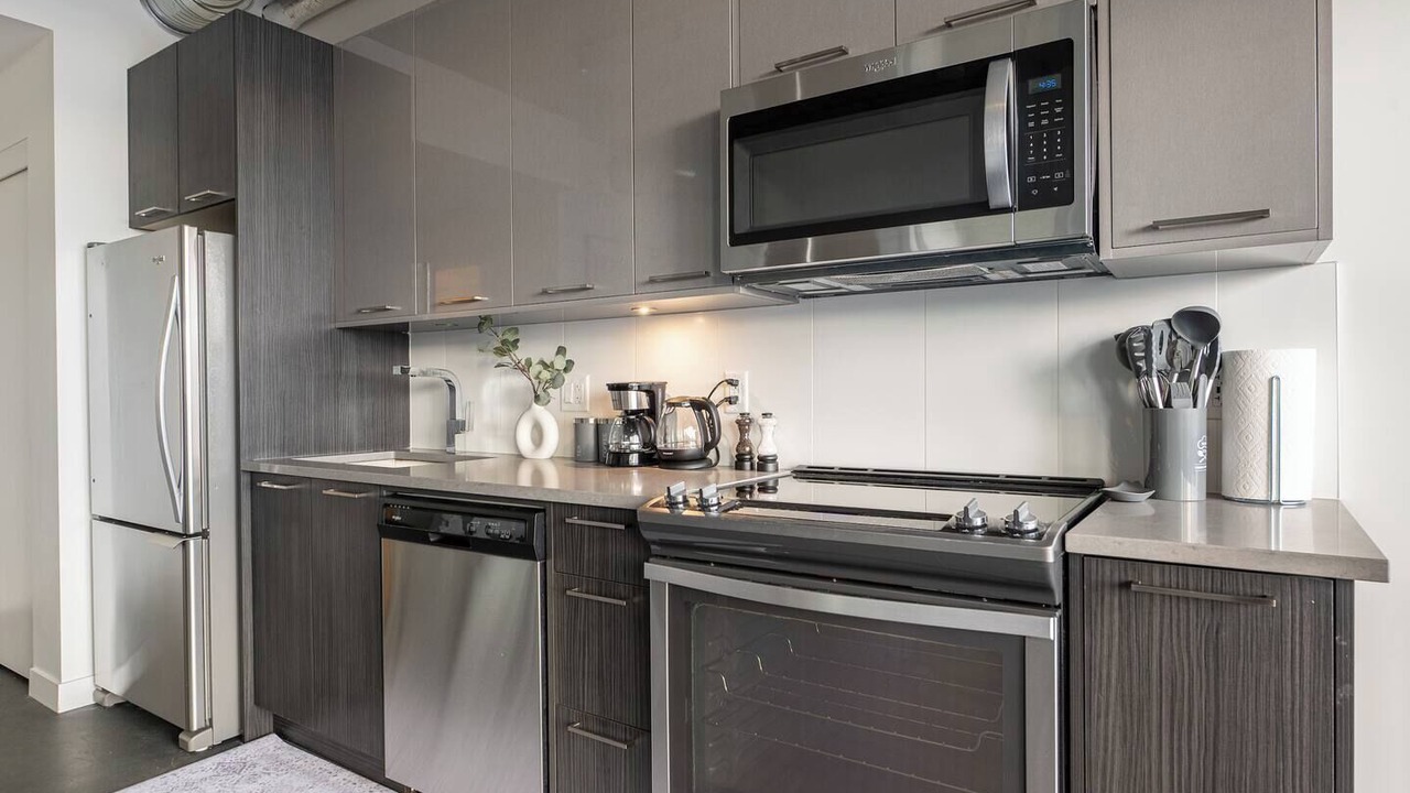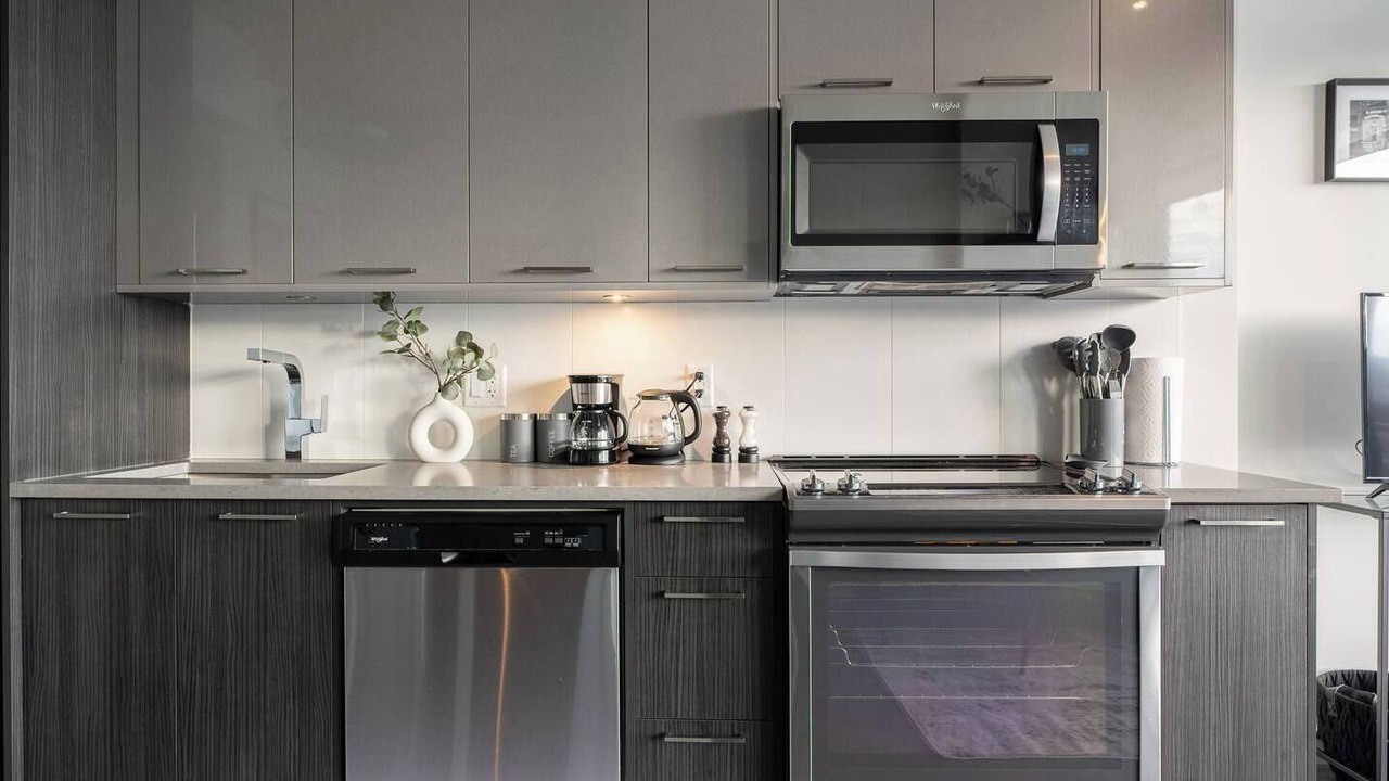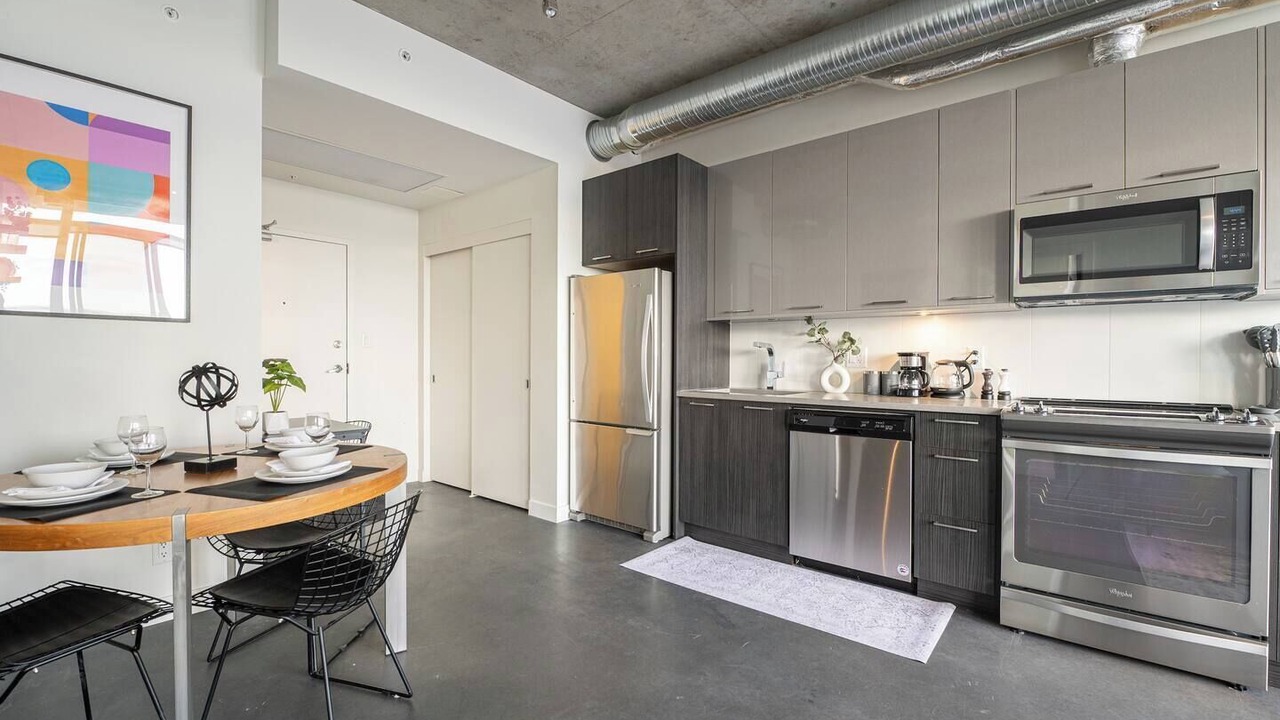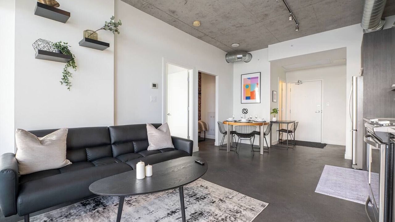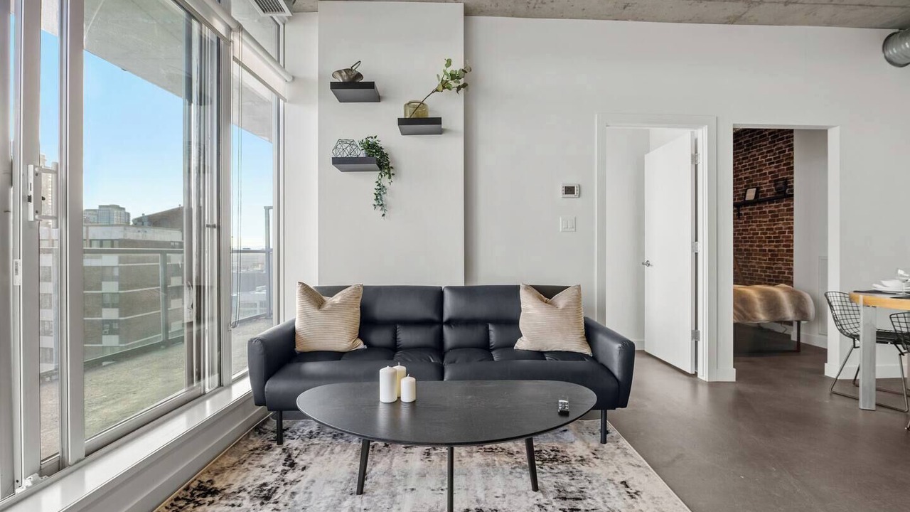 Welcome to the Brixton! After a long day of enjoying what Calgary has to offer, come home and unwind in our industrial style apartment. Enjoy the sunset from the large balcony or watch the downtown skyline at night. This unit was designed with our guests comfort in mind. High quality towels and linens, bathroom essentials and kitchen essentials will make your stay with us truly one of a kind. Please note second bedroom is a den area and is open. Please note this unit is located in a residential condo building. Although this will rarely happen, the condo building may experience periods of repair or maintenance in which there is a potential for water disruption, fire alarm inspection or furnace filter change. In the event this will happen, we will give as much notice as possible and will also provide water needed for your stay. Thank you for your understanding