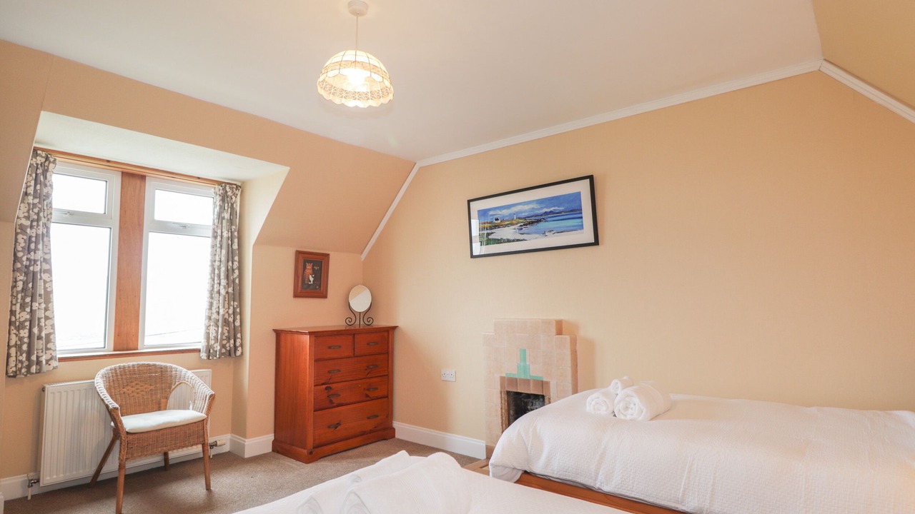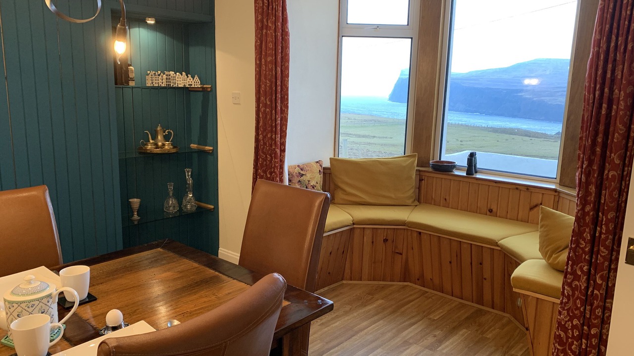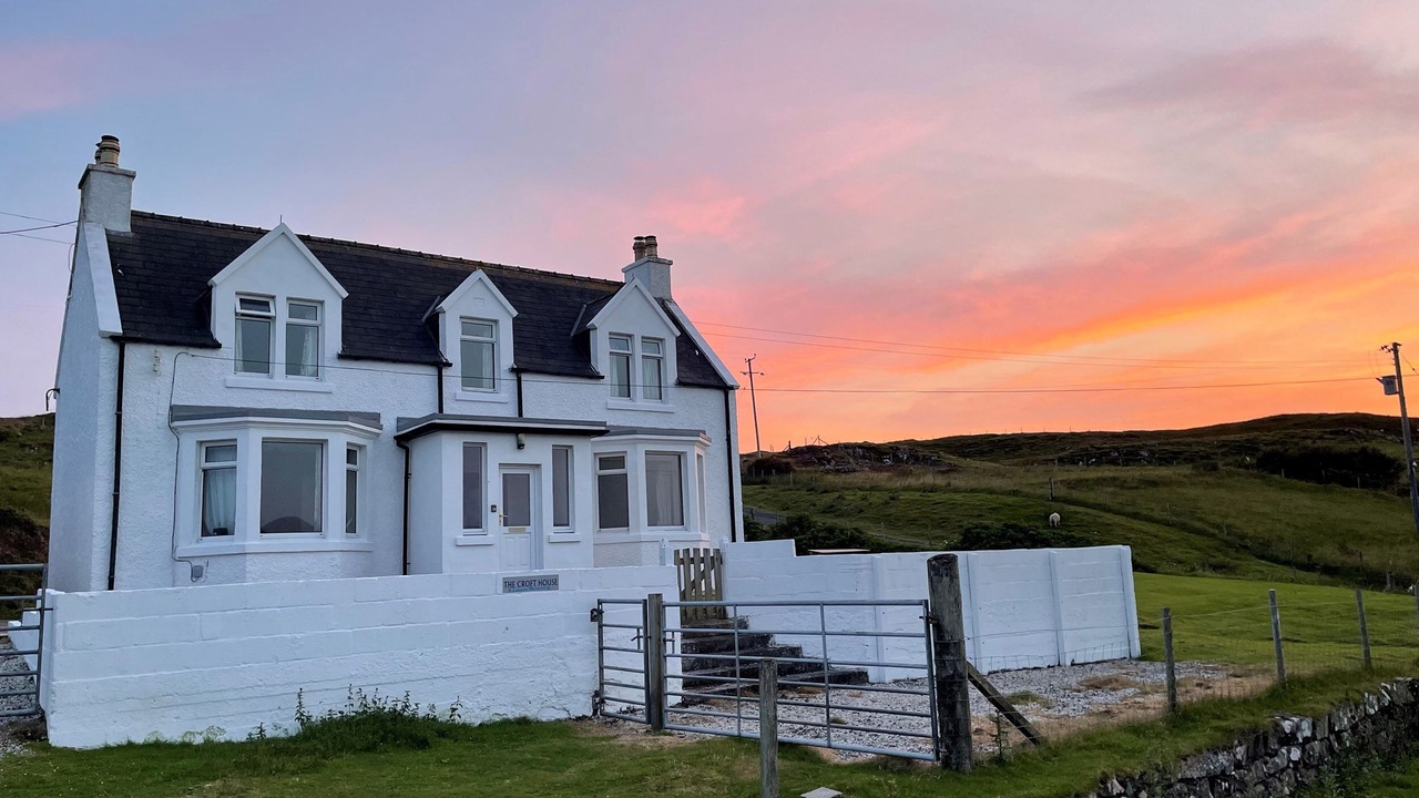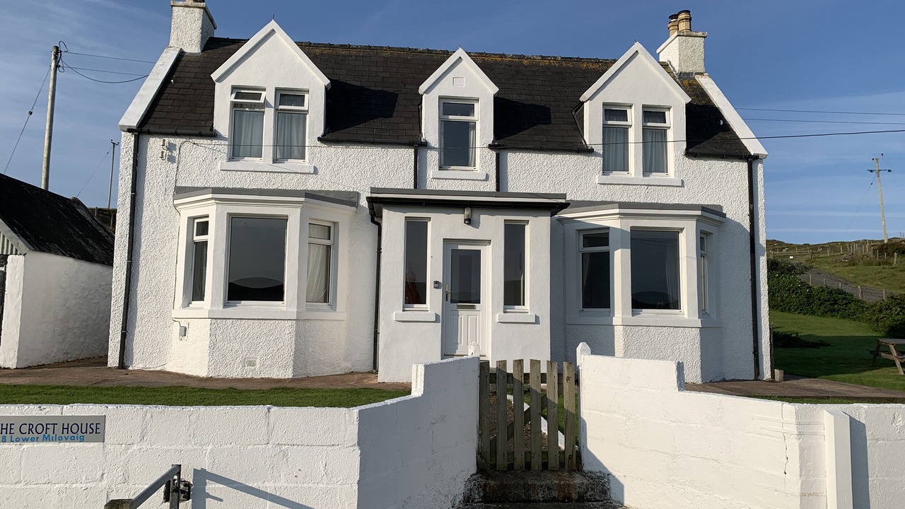 The Croft House is a detached cottage with wonderful views in Lower Milovaig near Glendale. The property has two bedrooms; a king-size double and a twin, sleeping four guests. There is a bathroom with bath, a ground-floor shower room, a kitchen, dining room with woodburning stove and a sitting room with an open fire. Outside there is a private garden with picnic bench and off-road parking for three cars. The Croft House is a quaint retreat on the beautiful Isle of Skye.