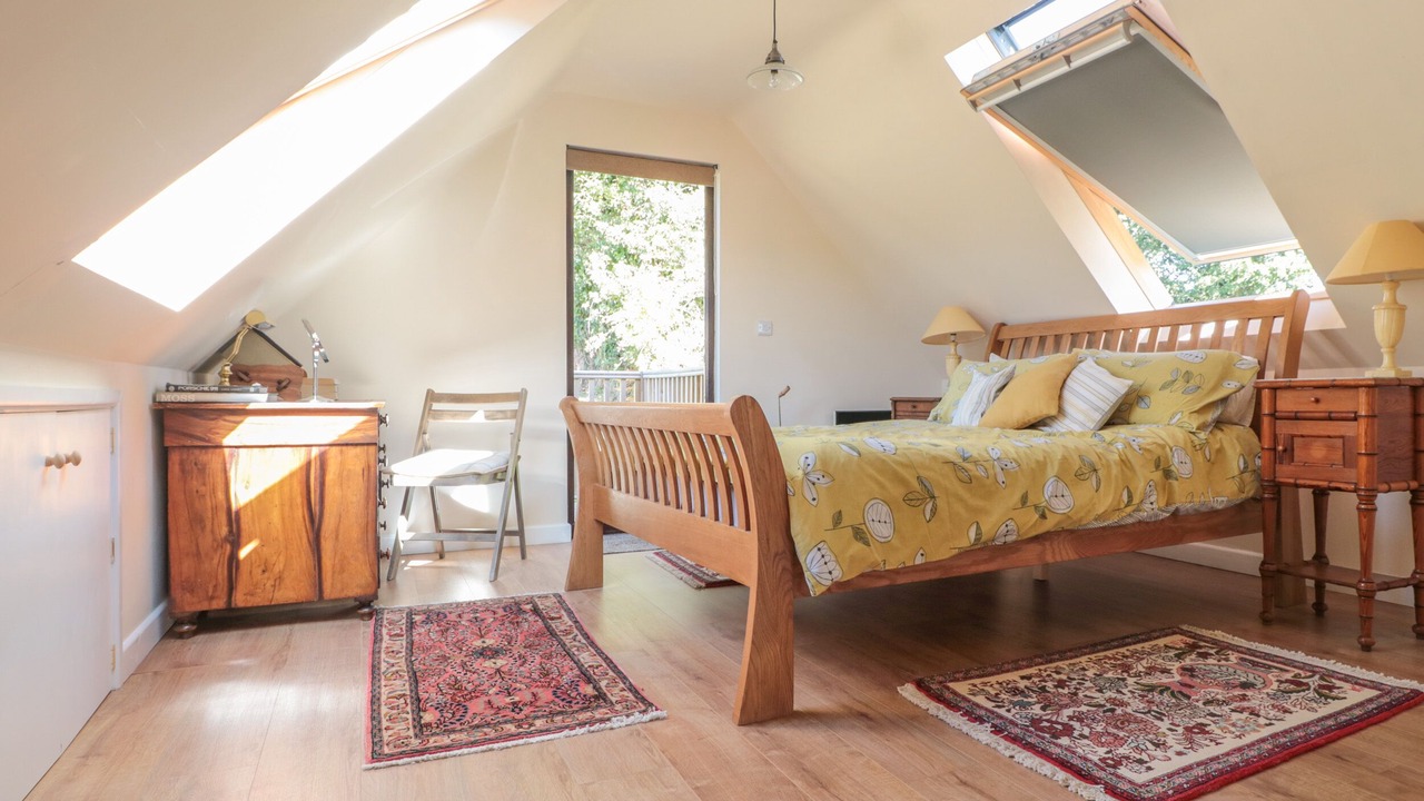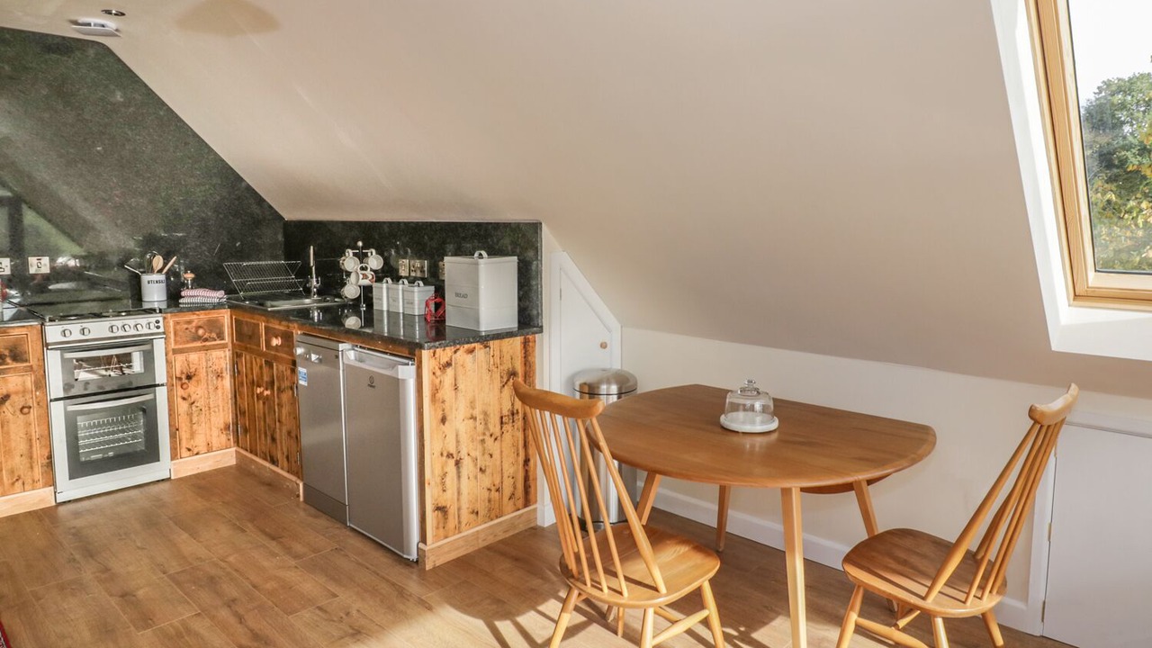1 Bed Conversion is a first floor cottage located in the village of Llangrove, Ross-on-Wye. Hosting one king-size bedroom with en-suite, this property can sleep up to two people. Inside you will also find an open-plan sitting, kitchen and dining area with woodburning stove. To the outside is off-road parking, and an orchard to the rear with furniture, and a shared outdoor swimming pool. Resting in a pleasant village setting within beautiful grounds, 1 Bed Conversion is a scenic retreat in a wonderful part of England.