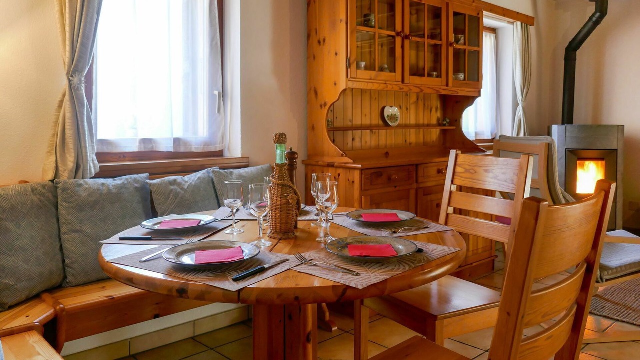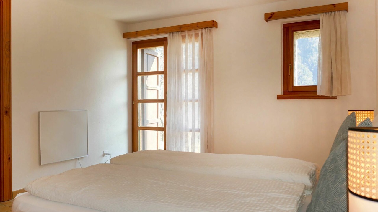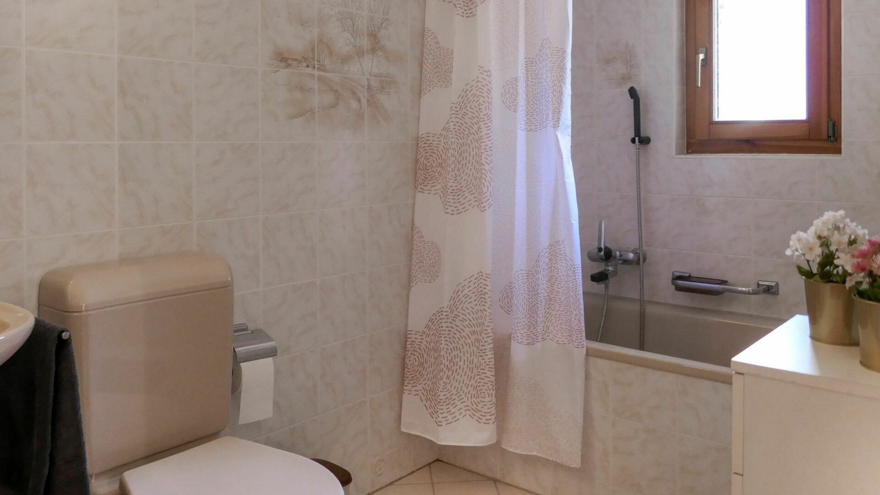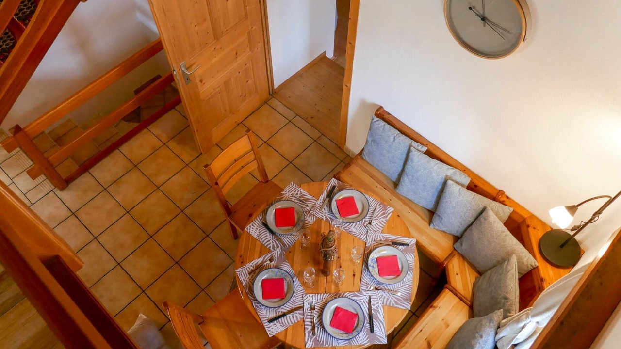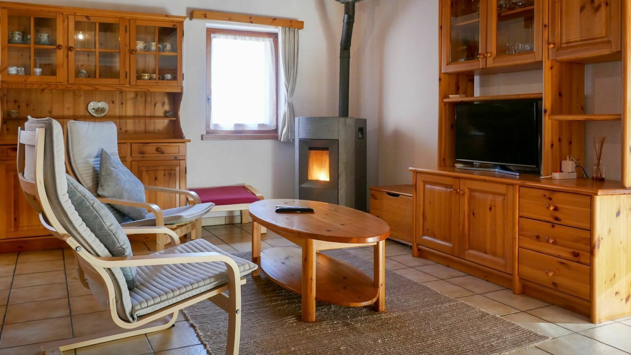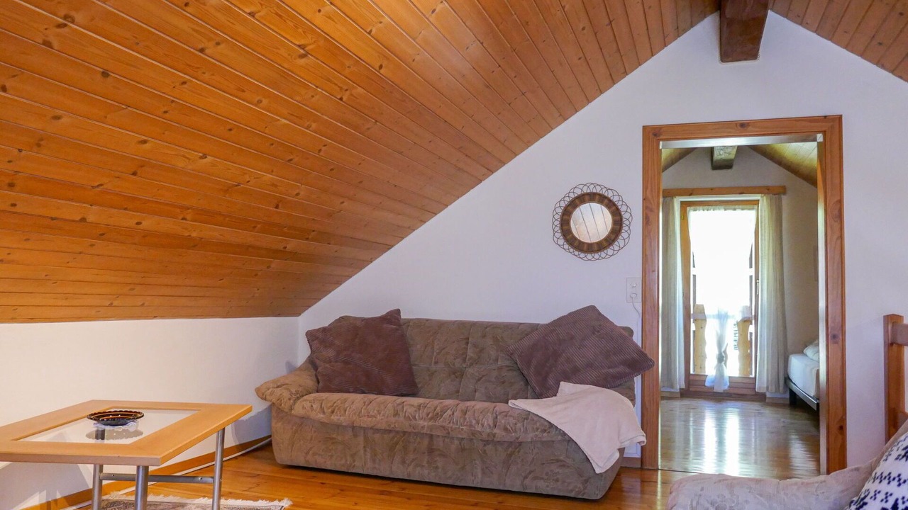 You can look forward to a spacious 4-room house with 120 square meters of living space, featuring a combination of open areas and cozy nooks. The main living and dining room are combined into one inviting space, complete with a dining nook, TV, and a wood-burning stove for added ambiance. One bedroom is equipped with a double bed measuring 160 cm wide and 200 cm long. The open kitchen is well-appointed with an oven, dishwasher, four ceramic glass hob hotplates, toaster, kettle, freezer, electric coffee machine, raclette grill, and a fondue set for enjoying traditional cheese fondue. A separate shower room and toilet are also included on the main level. Downstairs, you'll find another bedroom with a double bed of the same size, along with a bathroom with a bathtub and toilet, providing direct access to the garden. Upstairs, there is an open living room with sloping ceilings and a TV, as well as another bedroom with sloping ceilings and two single beds measuring 90 cm wide and 200 cm long.